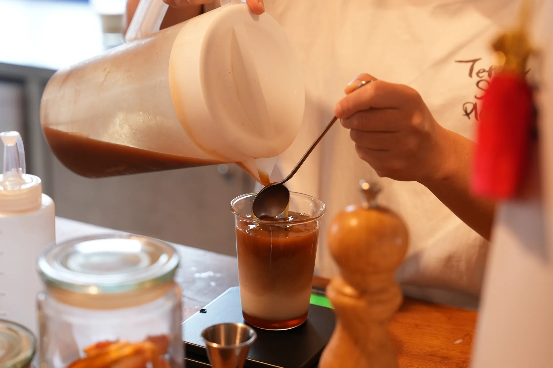 ▼坐在吧台的最大好處之一,就是能近距離欣賞店員調製飲品的過程。每一個調飲的細節都看得到,也能感受到他們專注又俐落的節奏。