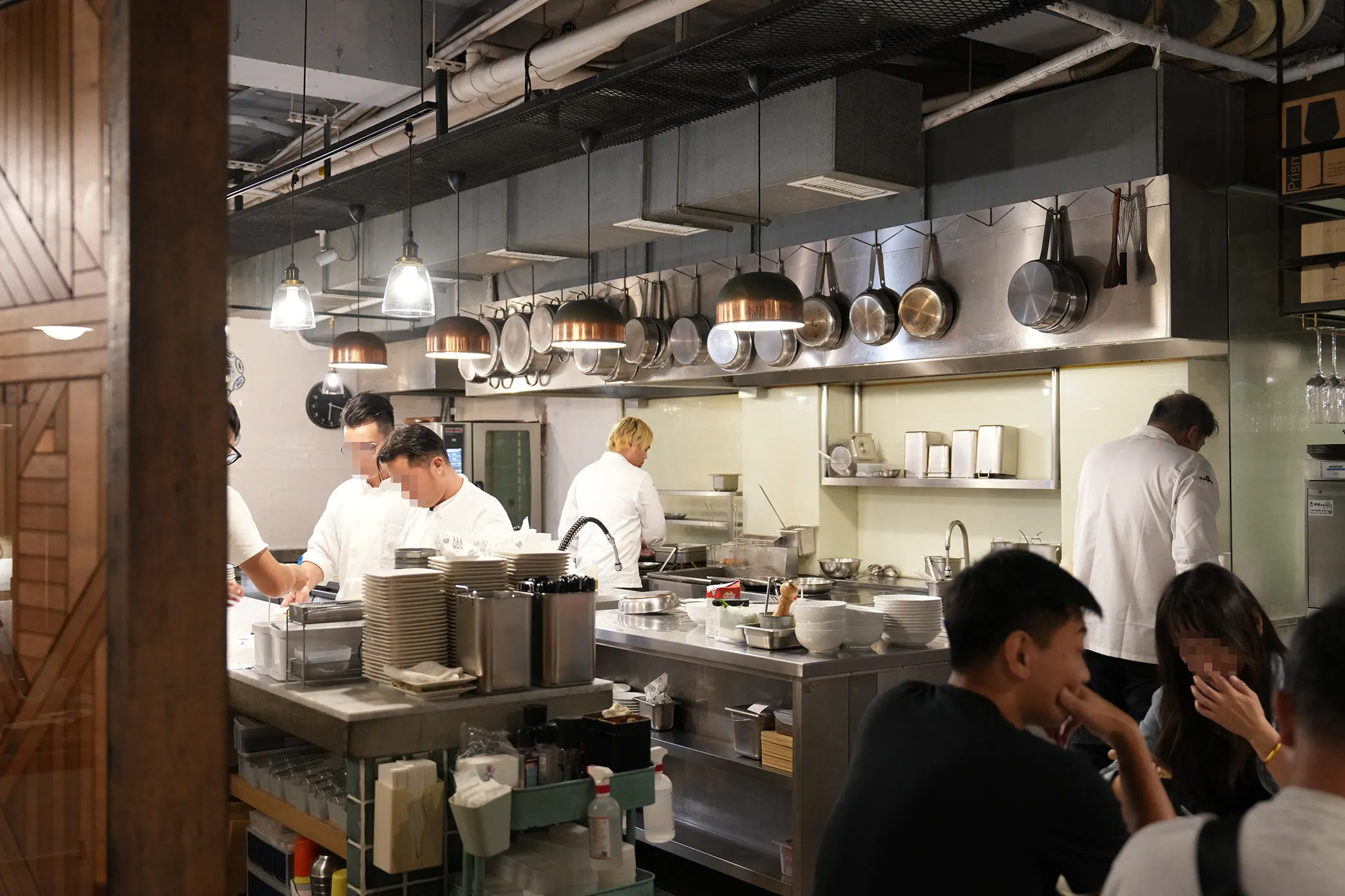 ▼餐廳設有半開放式廚房,可以清楚看見廚師們專注料理的身影,以及服務生穿梭往來、忙碌送餐的畫面。