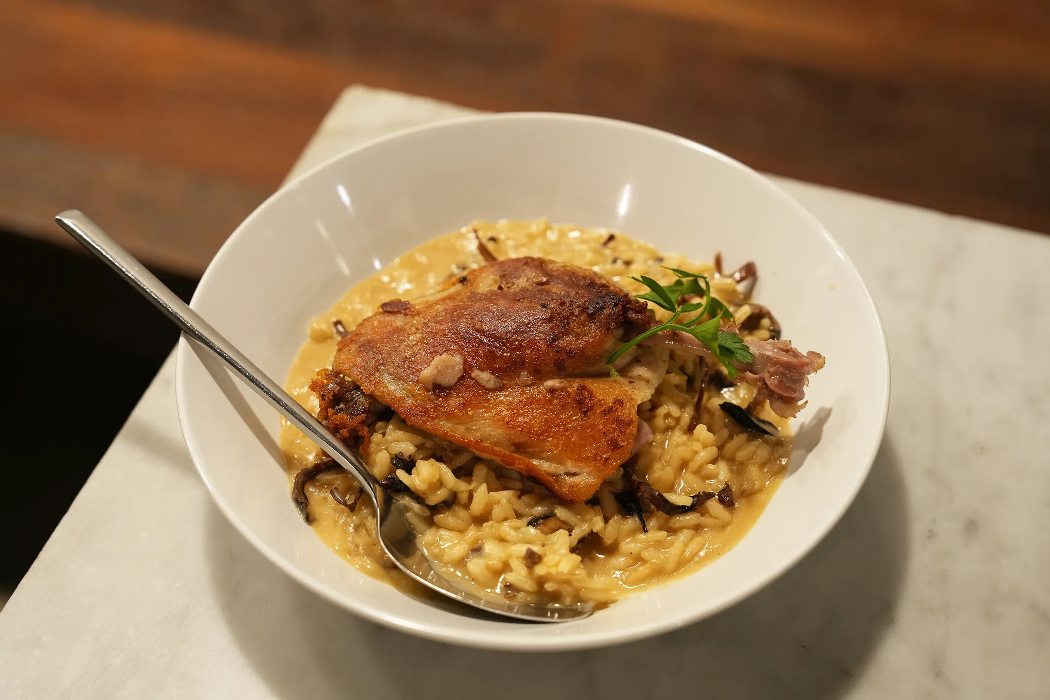 燉飯保留了米心的彈牙口感,吸附著濃郁的醬汁與鴨腿精華,每一口都充滿層次。野菇跟松露油味道恰到好處,巧妙地融合在米飯中提升整體風味。