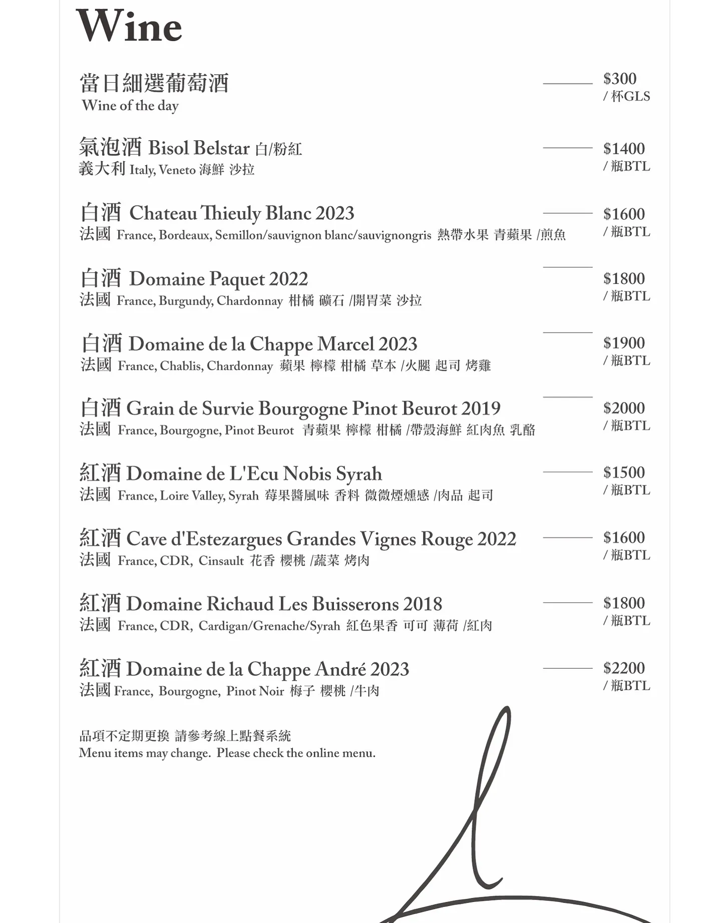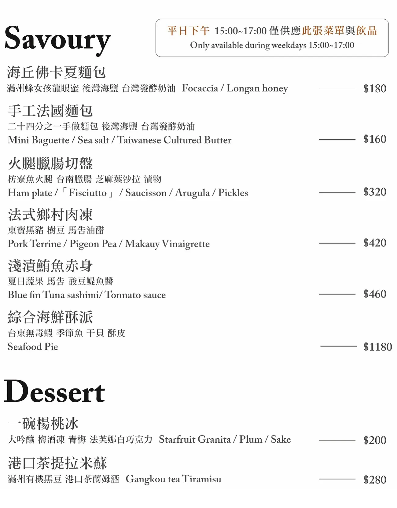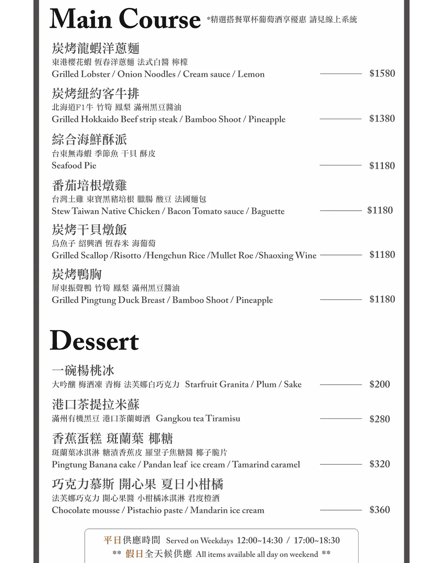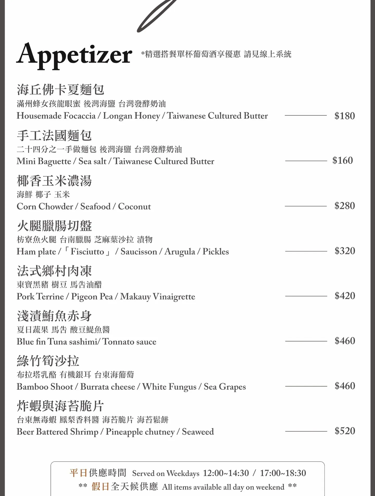 餐點表現更是可圈可點。主廚曾任職於知名法式餐廳,對季節性食材有獨到見解,將法式料理的精緻底蘊與台灣在地新鮮食材完美結合,每一道菜都展現創意與用心。