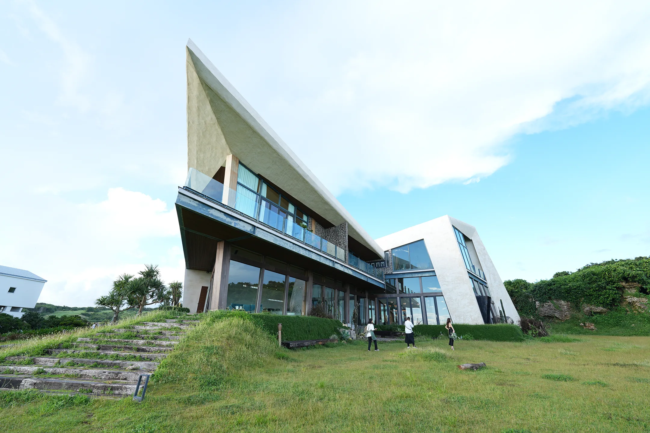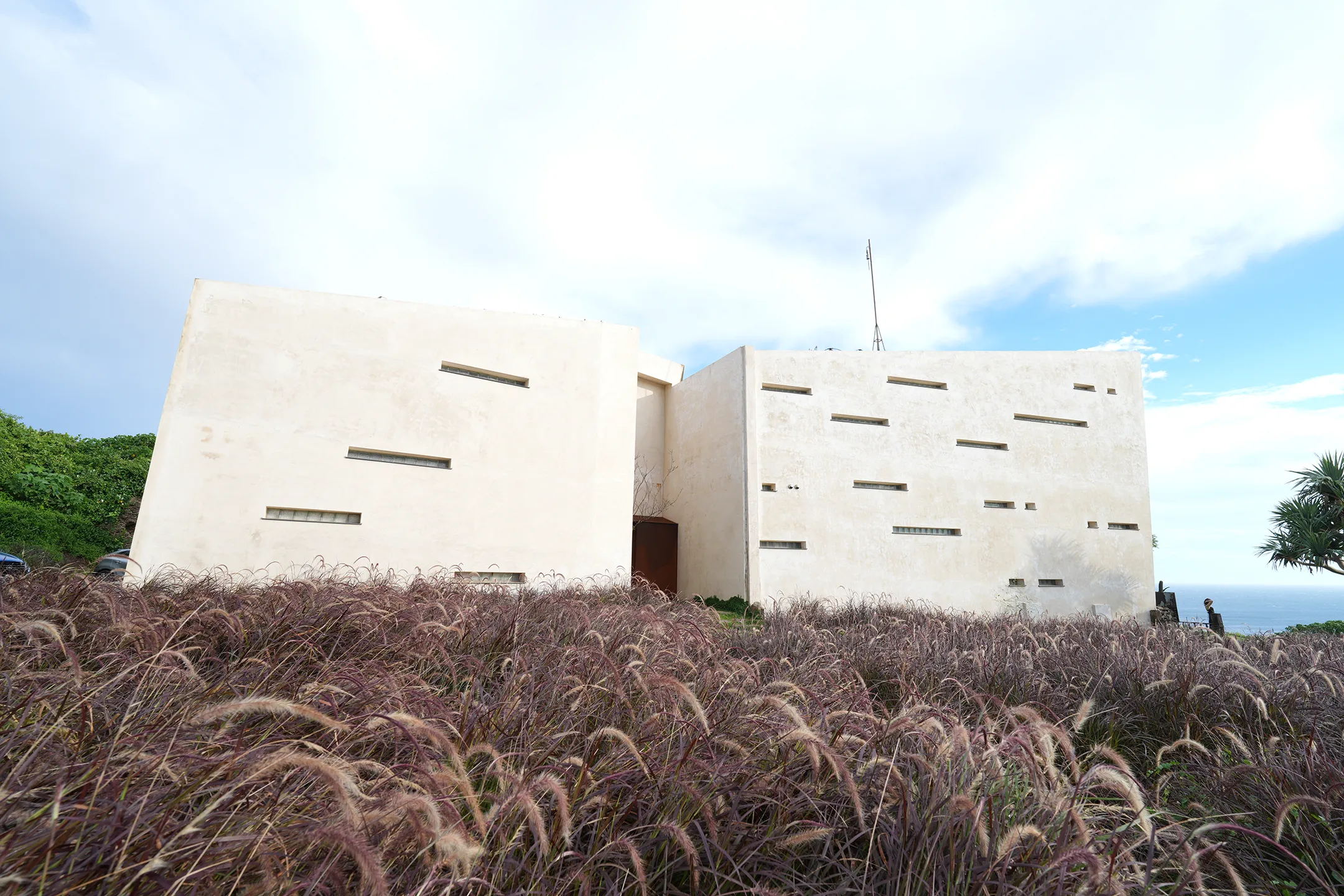 ▼「海丘」就是這棟充滿現代感的白色清水模建築,矗立在埔頂大草原的山丘上,遠遠望去相當壯觀。建築採用簡約俐落的幾何線條設計,展現出獨特的建築美學。