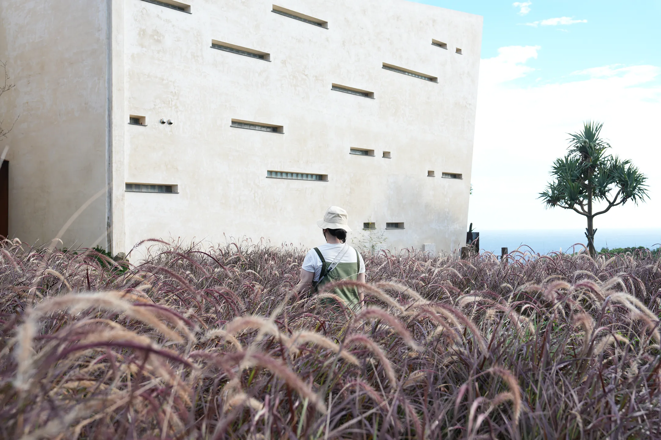 ▼建築前方有一大片粉紫色狼尾草隨風搖曳,毛茸茸的花穗在微風中輕輕擺動,形成一片夢幻的紫色花海。不少人會特地在這裡取景拍照,無論是人像、建築或是純拍花草,怎麼拍都超好看。尤其是下午,當陽光灑落在狼尾草上,整片草原會呈現出柔和的金粉色調,浪漫氛圍瞬間爆棚,難怪這裡會成為IG上的熱門打卡點,吸引許多網美和攝影愛好者前來朝聖。