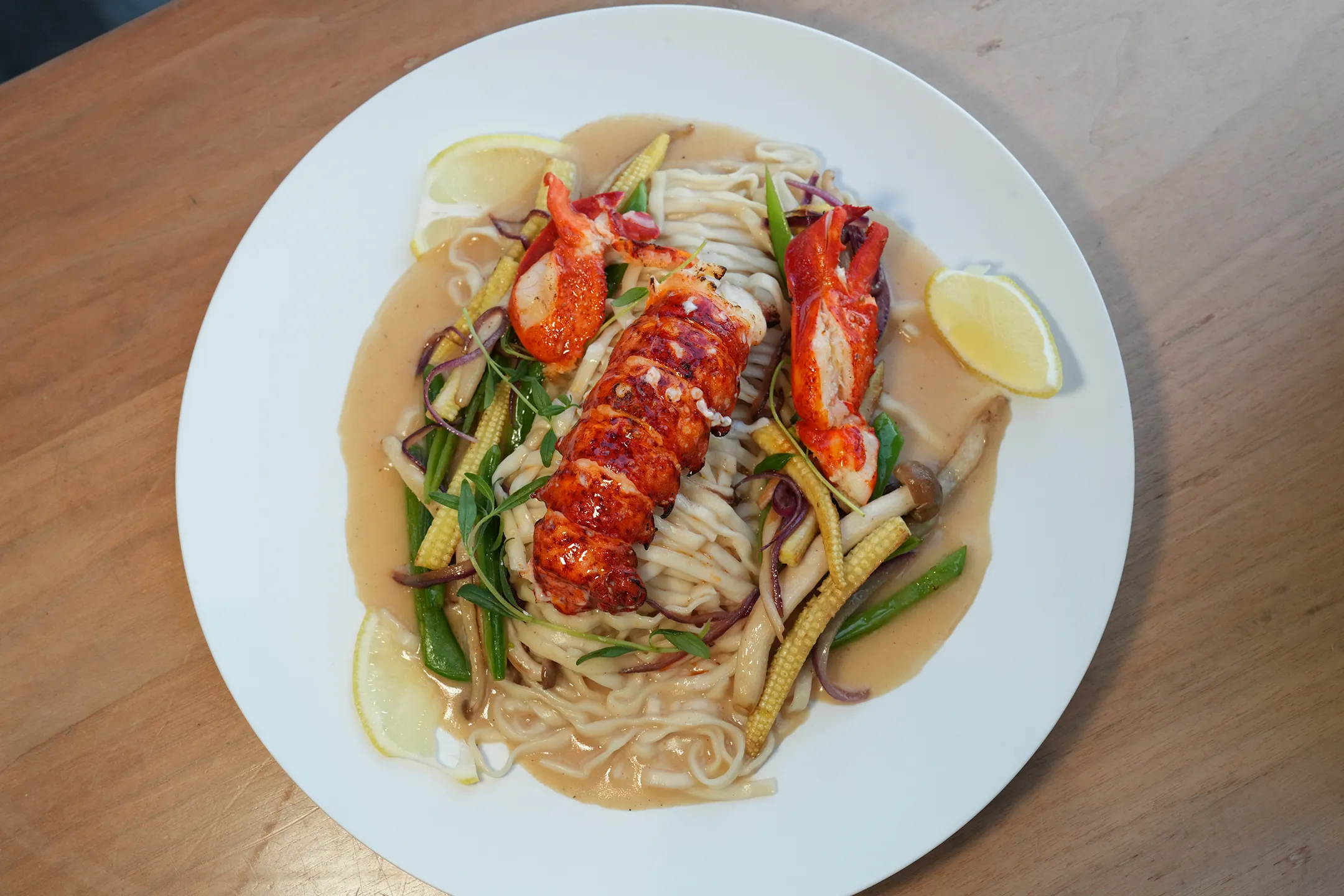 ▼屏東盛產的洋蔥製作成的麵條,完全沒有洋蔥味,讓不愛洋蔥的朋友松一口氣,麵條吃起來很Q彈,不輸一般的義大利麵,醬汁香濃不膩,龍蝦吃起來多汁、肉質軟嫩,淋上新鮮檸檬,為餐點增添了清爽的風味。