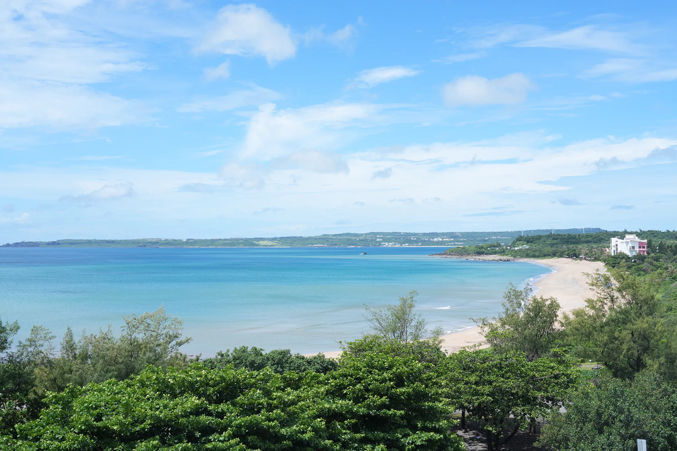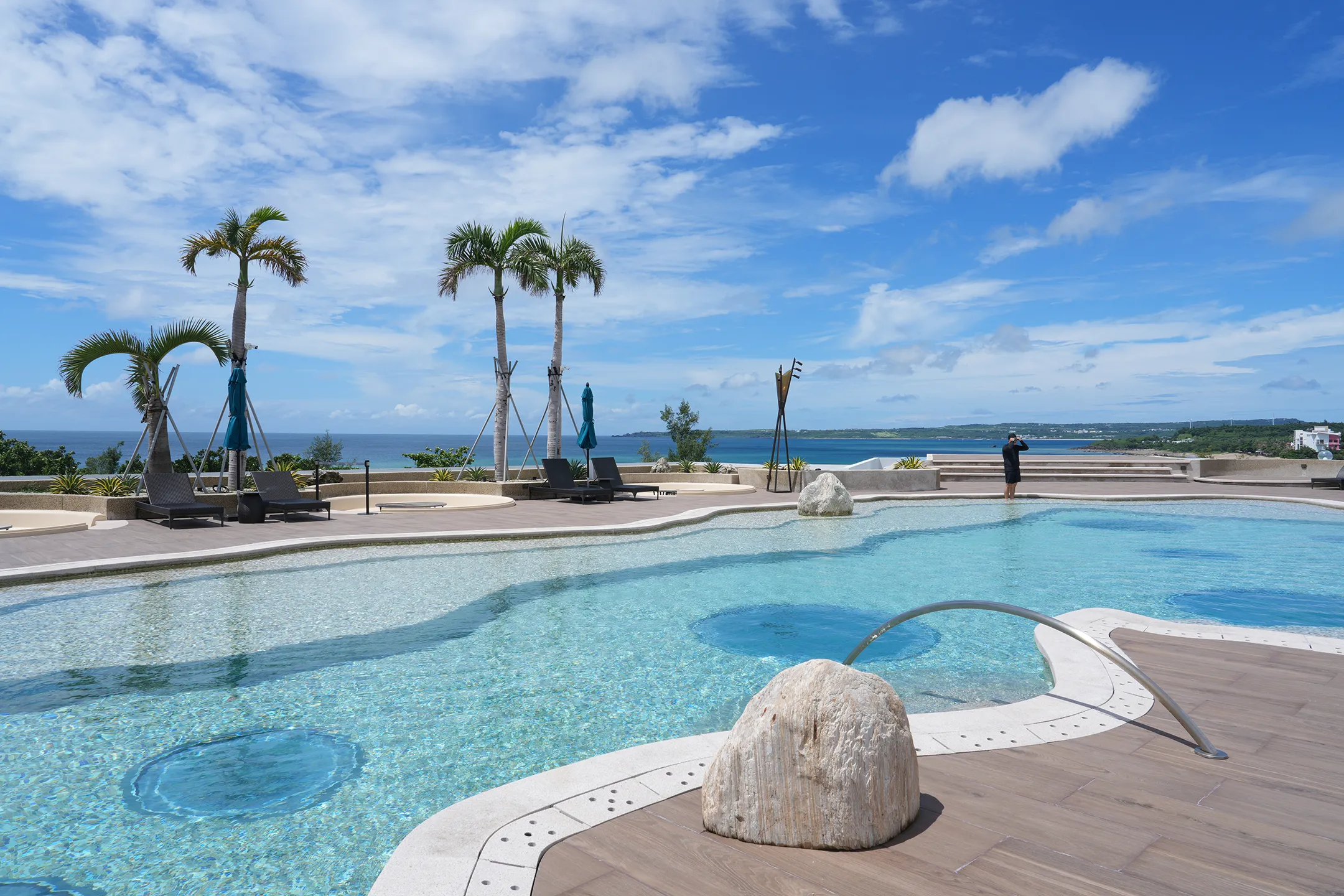 ▼趁著早晨天色晴朗,我們用完早餐便來到泳池邊散步。沿著欄杆往海邊望去,那片湛藍的海水、飄逸的白雲和無垠的天空完美地融為一體,美得讓人久久難以移開目光。