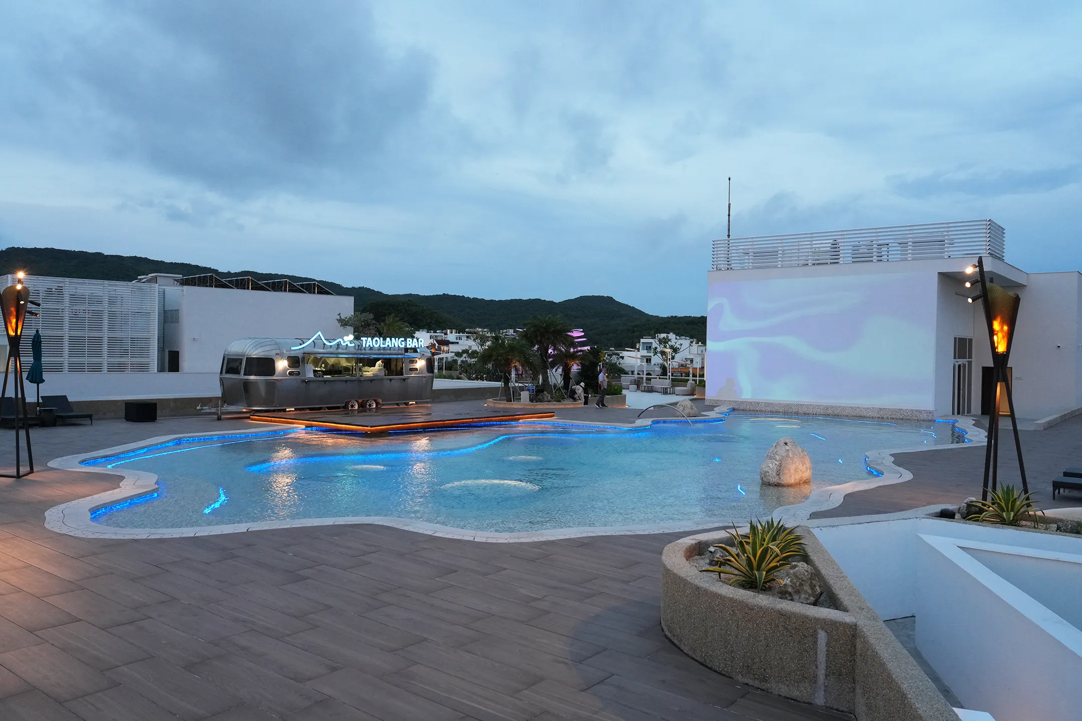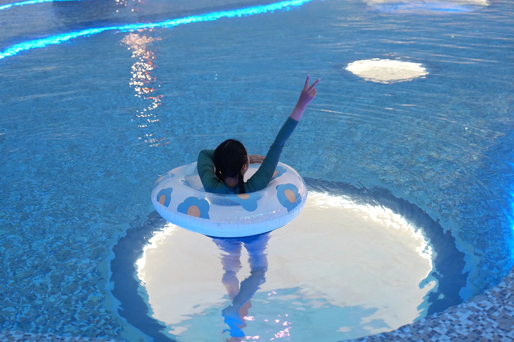 ▼夜晚的無邊際泳池四周會亮起夢幻感十足的燈,晚上來這邊游泳也是一大享受。