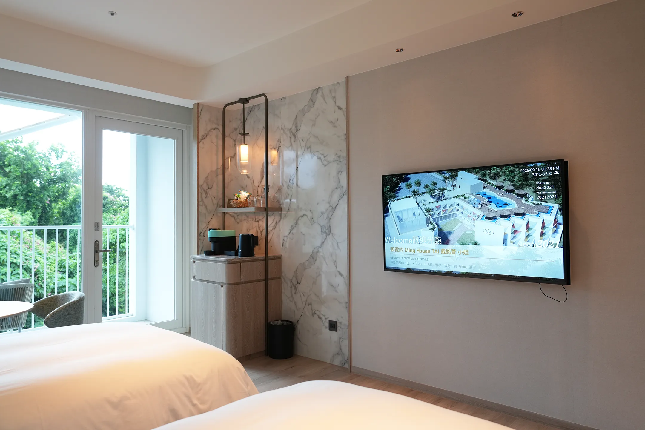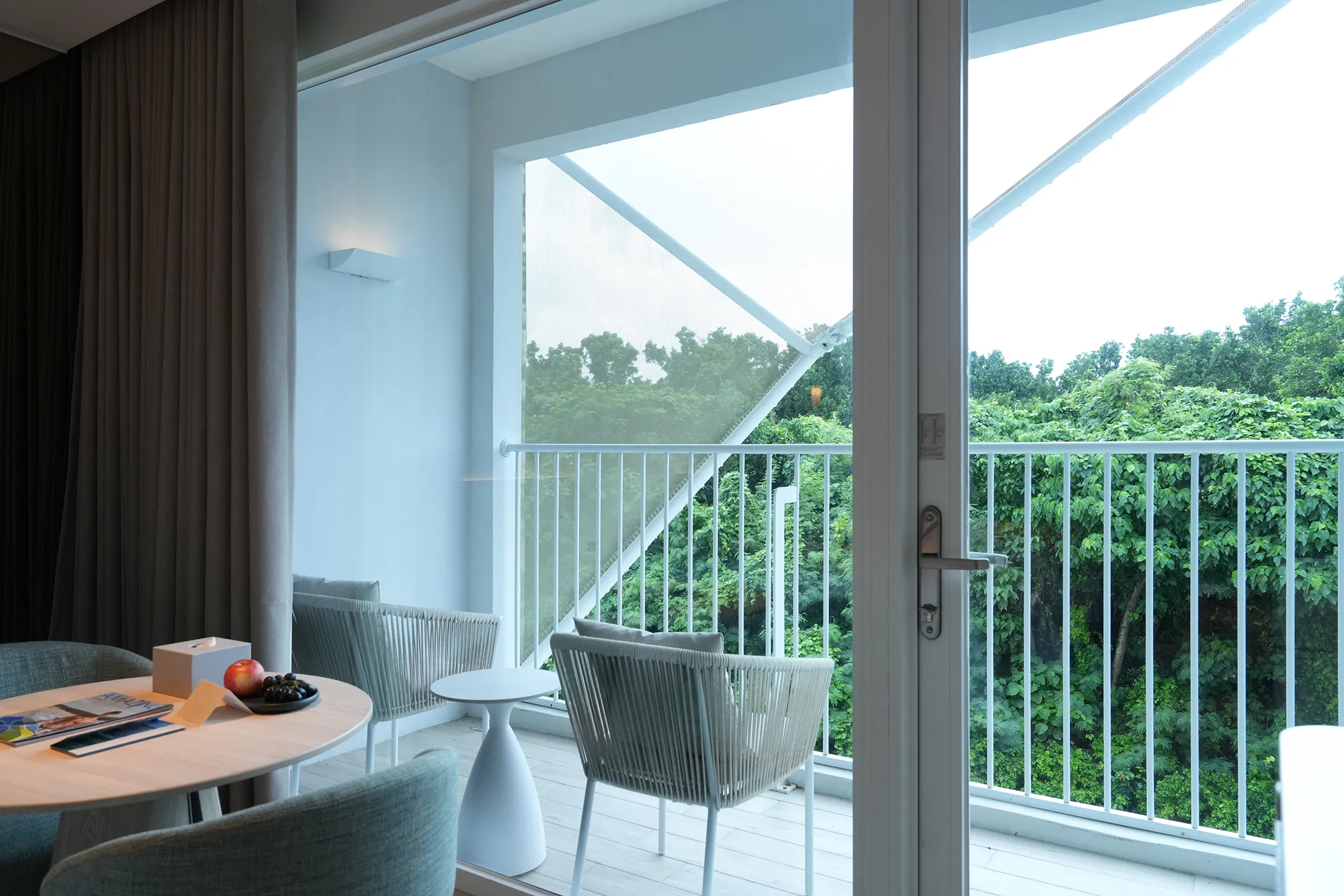 ▼我們住宿的房型配有一個獨立小陽台,雖然面對著樹林而不是海景,但看著滿眼綠意,同樣讓人感到特別輕鬆愜意。坐在陽台上呼吸新鮮空氣,享受大自然的寧靜。