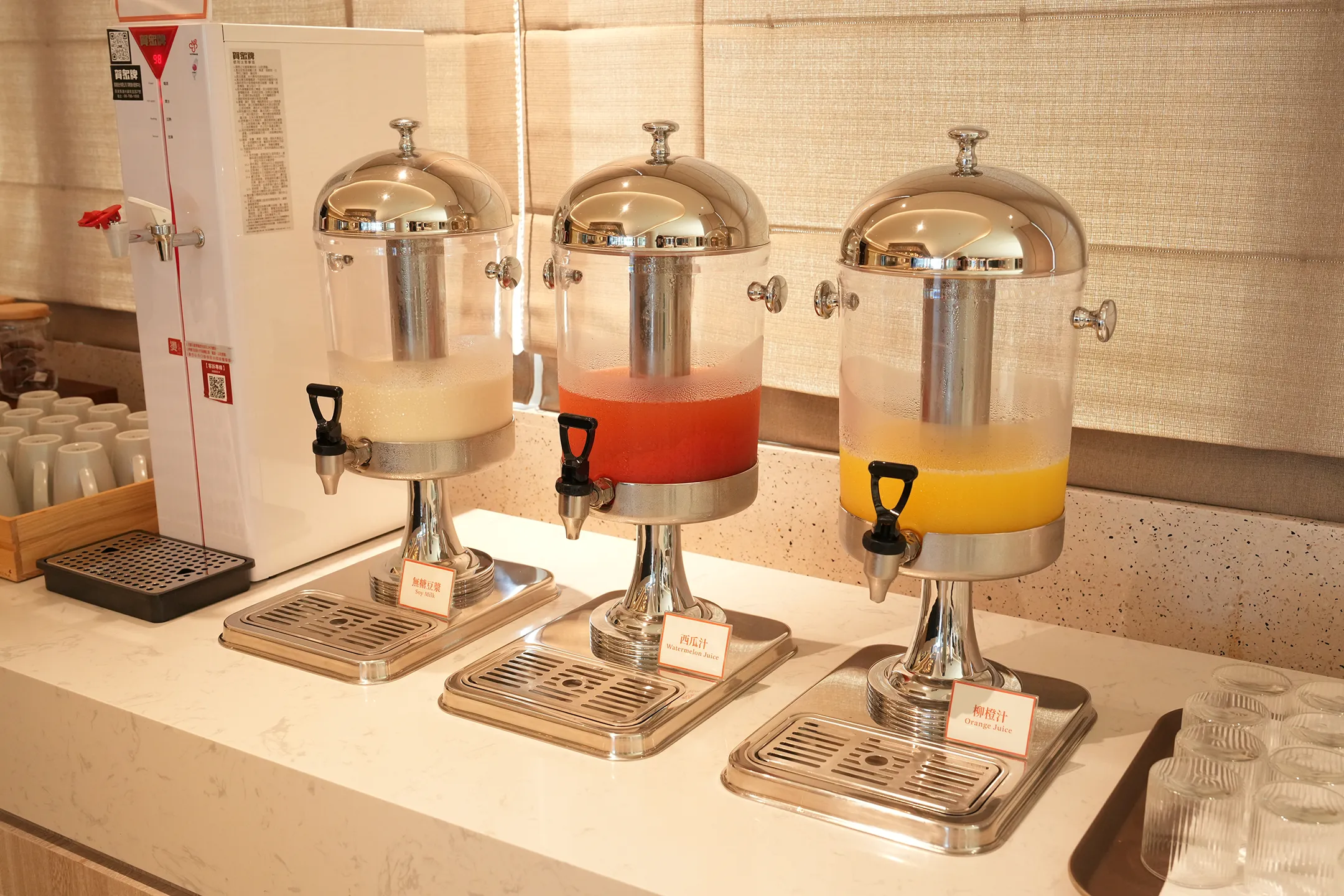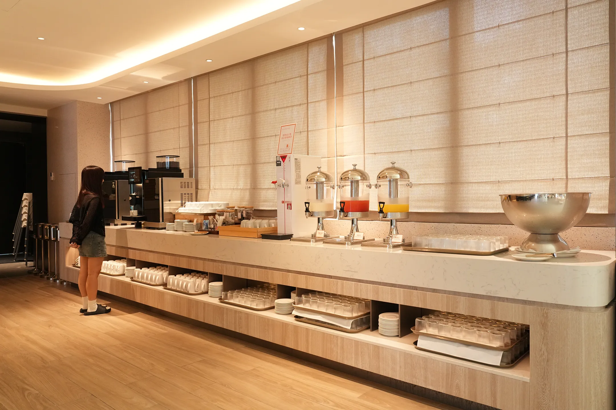 ▼飲品的部分是自助取用,有提供咖啡、茶包、新鮮果汁。身為每天都要來點咖啡因的人,我選了拿鐵,不過因為只是一般咖啡機的拿鐵,所以喝起來就滿普通的。