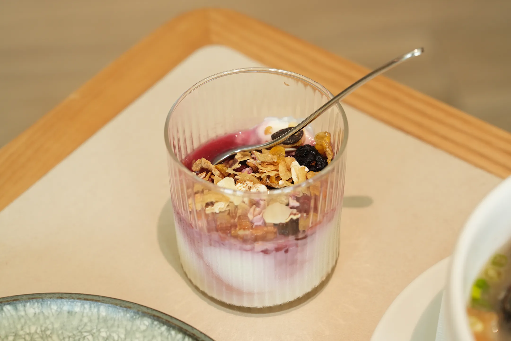 ▼優格配果醬、玉米脆片、葡萄乾,真的絕啦!優格酸酸的,果醬甜甜的,加上脆片的爽度,還有葡萄乾的香氣,是一杯層次感豐富的優格。