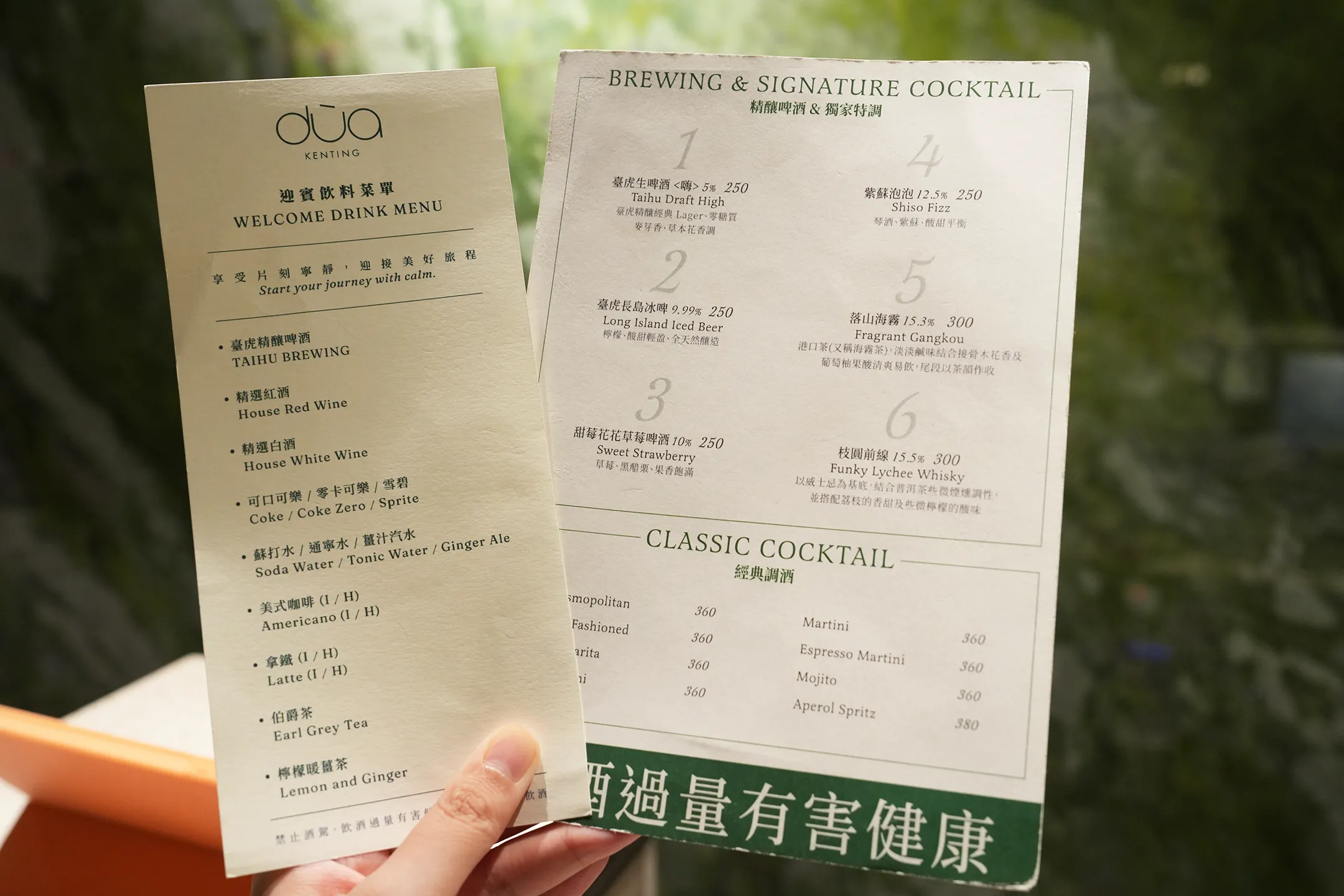 這趟跟朋友來墾丁入住「Hotel dùa」,整體的體驗都很好,服務人員相當親切、服務很周到,整間飯店環境很新、很舒適,充滿設計感的大廳,真的會讓人想要多待一下;無邊際泳池絕對是飯店的亮點設施,超級好拍照,還有絕佳視野,讓你飽覽超美的景觀;房間部分空間很大,整理的乾淨整齊,備品也都很好用,重點是床睡起來太舒服啦;最後一定要大力稱讚飯店早餐,用點餐的方式讓客人吃到現點現做的早餐,餐點選擇豐富,每一道料理都很好吃,很推薦有計畫要來墾丁旅遊的朋友們,可以來住看看「Hotel dùa」,享受度假的氛圍。
