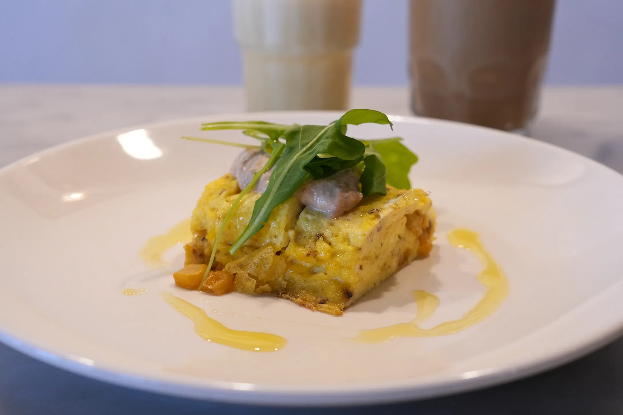 ▼「焦糖香蕉煎餅 堅果奶油」用的是比較熟的香蕉,甜度很高、香氣也更濃郁。香蕉的綿密、煎餅的鬆軟、堅果的酥脆,再加上焦糖和奶油的香甜,每一口都有不同的層次和口感。甜鹹交織、軟脆並存,吃起來很有驚喜感!