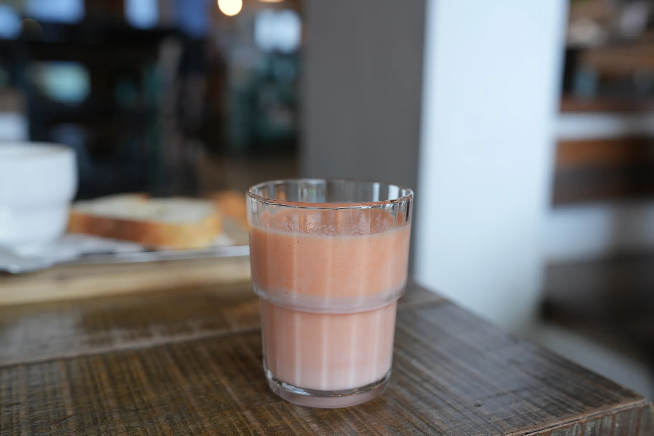 ▼季節性果汁第二天換成了「木瓜牛奶」,甜度調得剛剛好,喝得到濃郁的木瓜香氣和奶香,口感綿密滑順,就是那種讓人一口接一口停不下來的好喝!