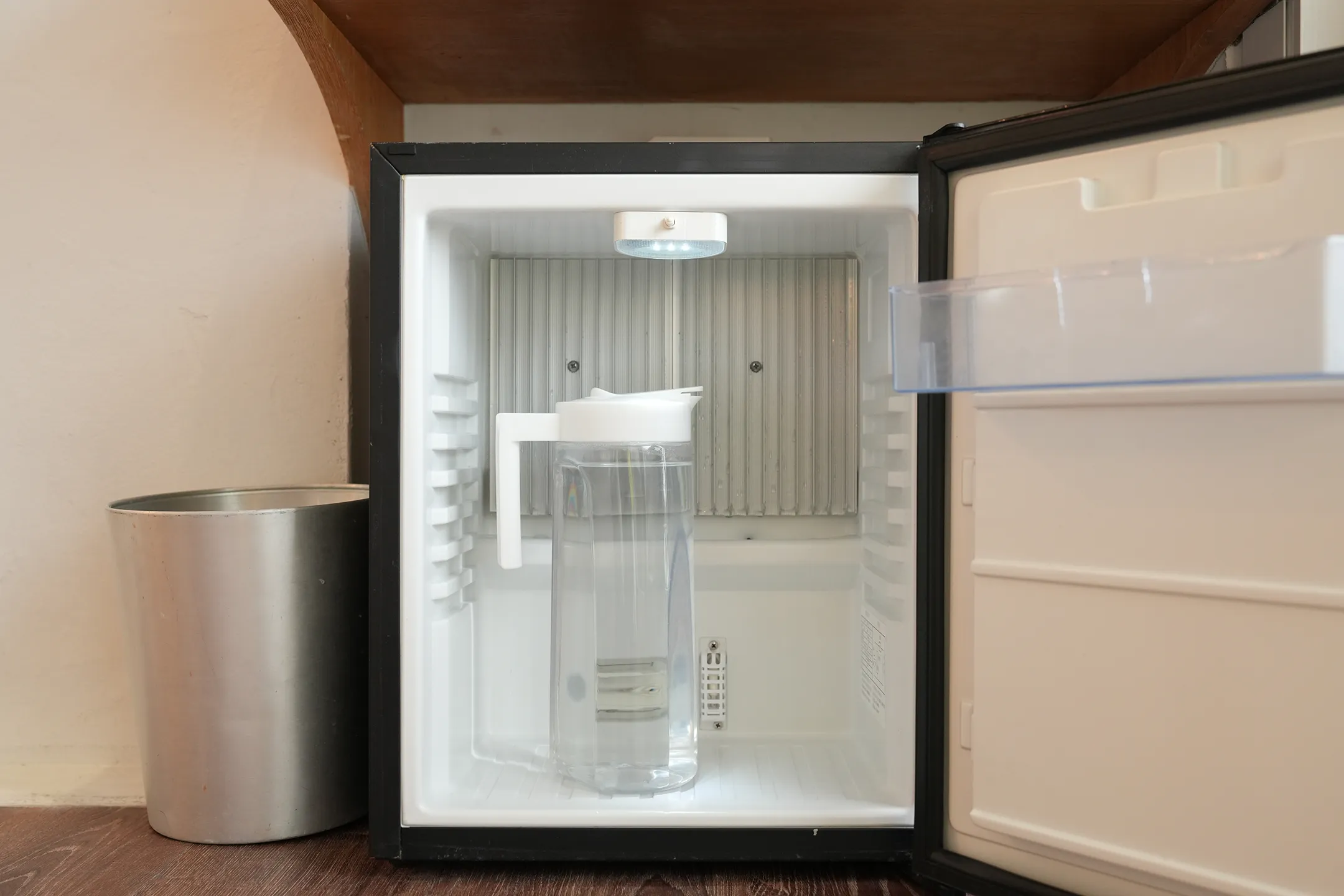 ▼為講求環保,冰箱內有冷水壺,如果有需要飲用水,可以去樓下飲水機自助裝水。