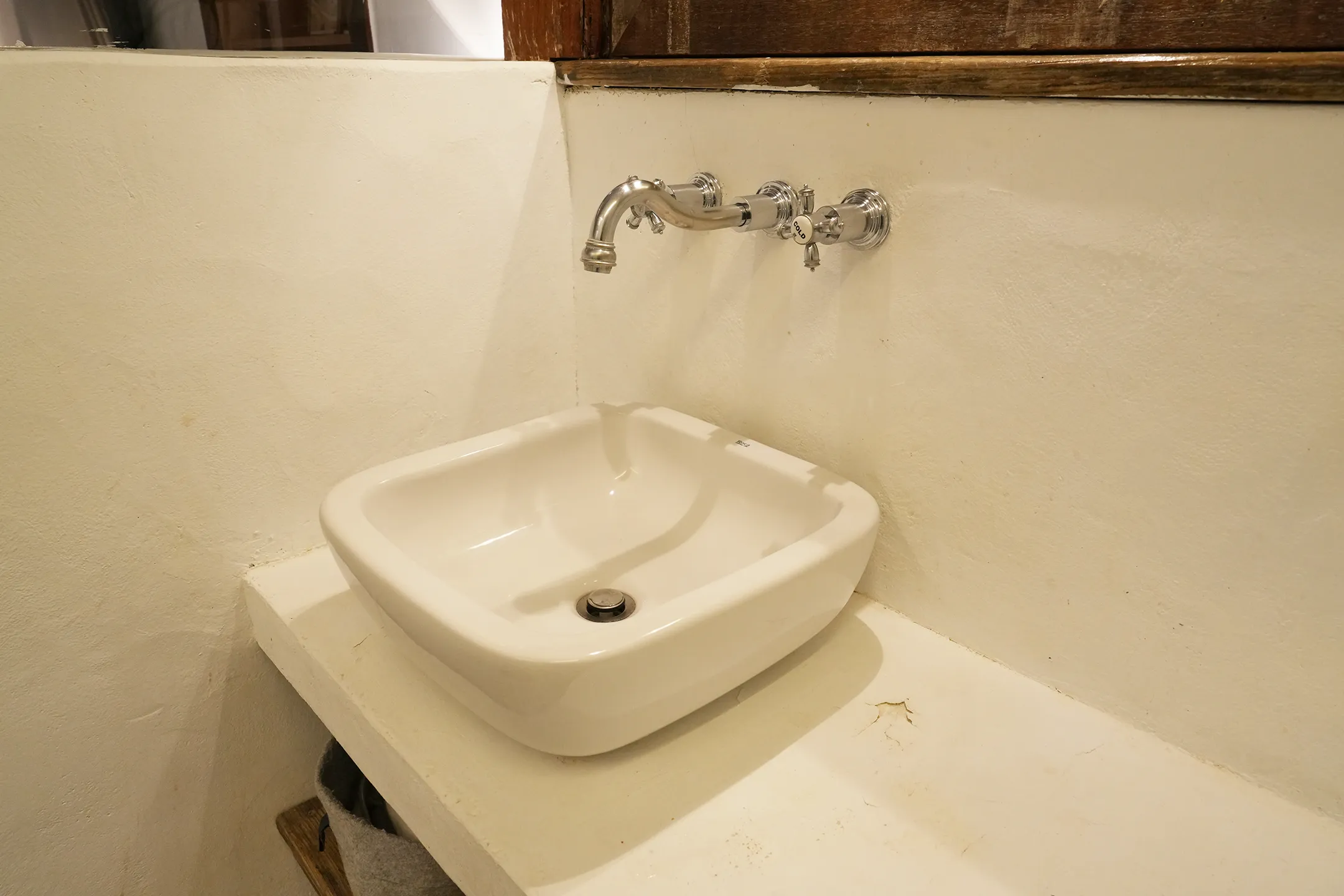 ▼洗手台配置的水槽深度偏淺,加上水龍頭位子比較高一點,只要水量稍大就容易濺出水花,建議使用時將水流調小,以免弄濕檯面或衣物。