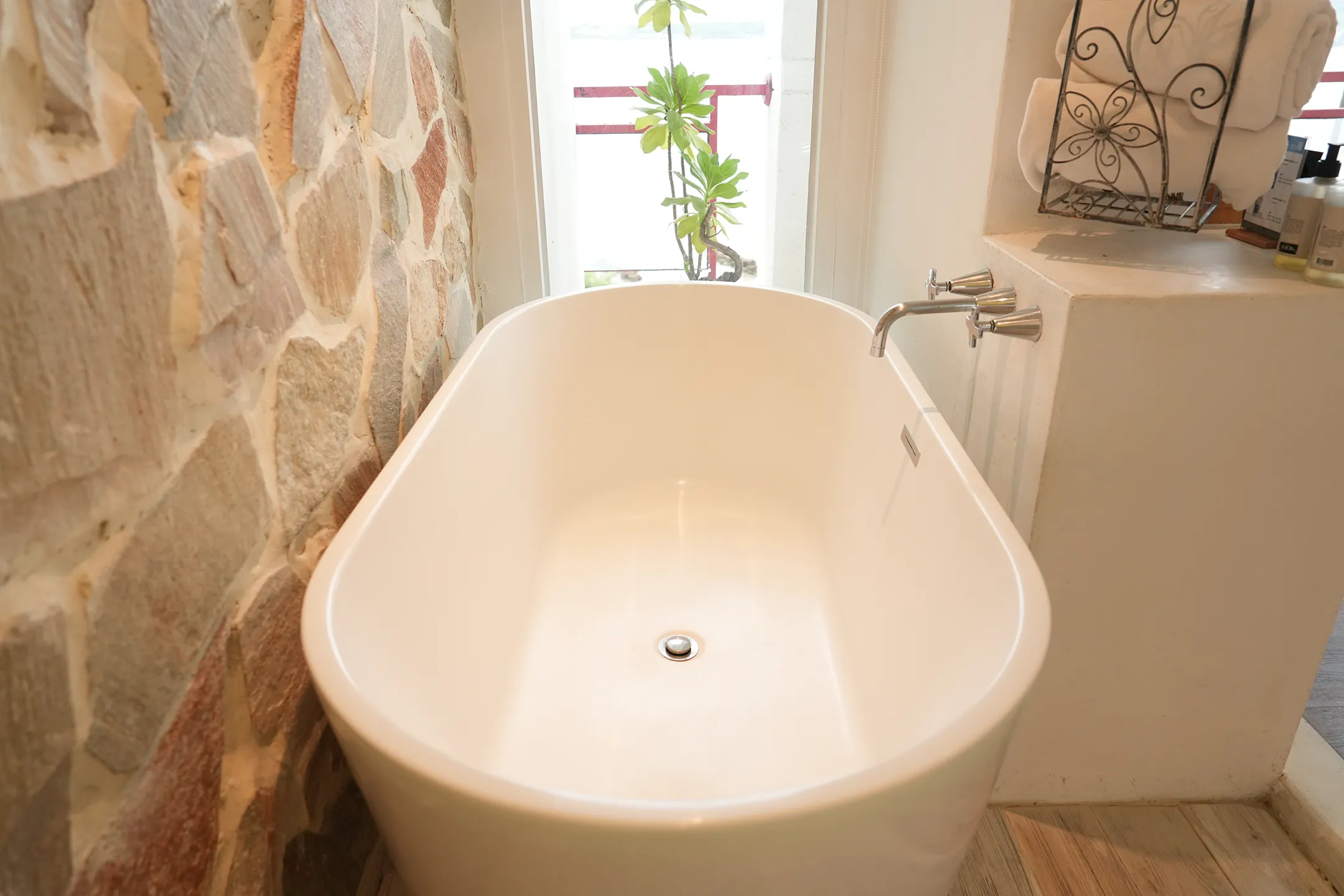 ▼浴缸區域的遮蔽問題同樣明顯,僅有一半具有隱私保護。當初吸引我們訂房的「景觀浴缸」賣點,實際一訪卻發現——浴室外窗已被植栽遮蔽,泡澡時根本無法欣賞到任何景色。