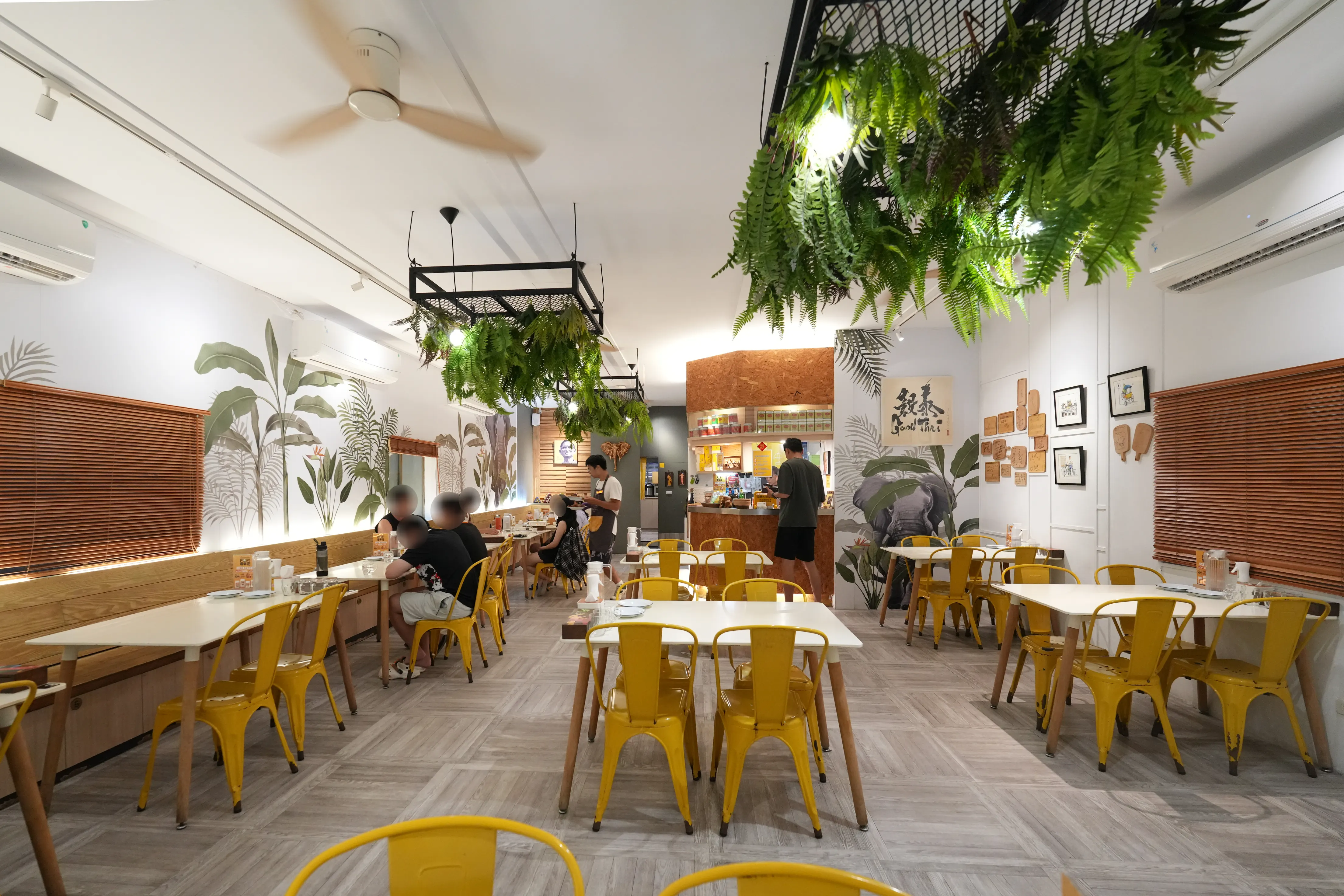 ▼走進店內,映入眼簾的是寬敞明亮的用餐空間,亮黃色的椅子與門口的招牌相互呼應,搭配竹簾、木質櫃台,以及點綴在天花板與牆面的綠植元素,這一刻就像瞬間走進泰國當地的小餐館般,讓人感到格外放鬆。