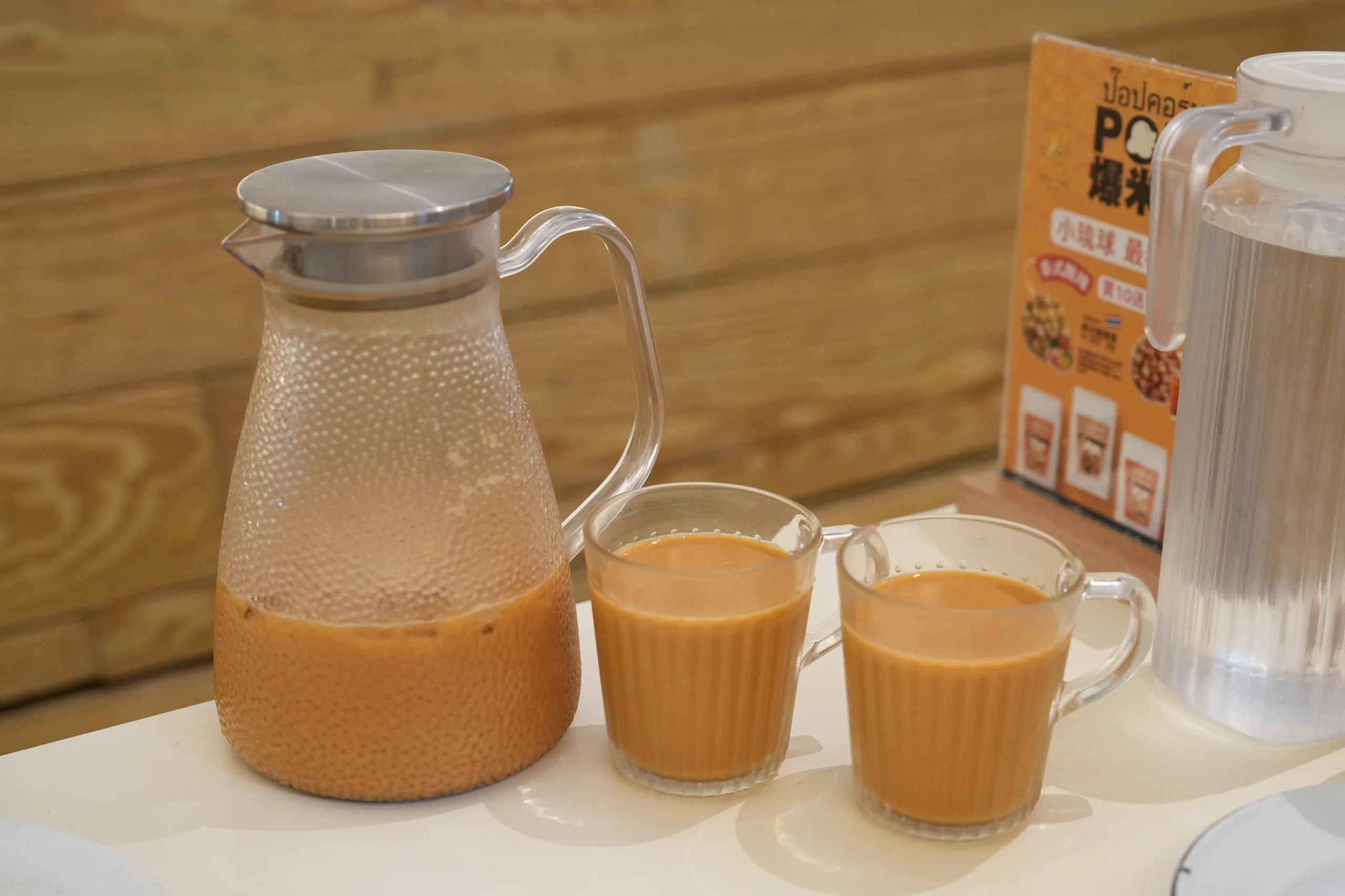 ▼原本看到菜單上泰式手標奶茶的單位寫著「桶」,還以為店家會特別用鐵桶盛裝,結果餐點來的時候卻是普通的玻璃壺,詢問店員才得知,原來店家是為了避免鐵桶容易生鏽、影響衛生,才改用玻璃壺,實際喝起來整體甜度偏高,帶有濃郁的茶香與奶香,螞蟻人應該會很喜歡,也很適合多人一起分享。