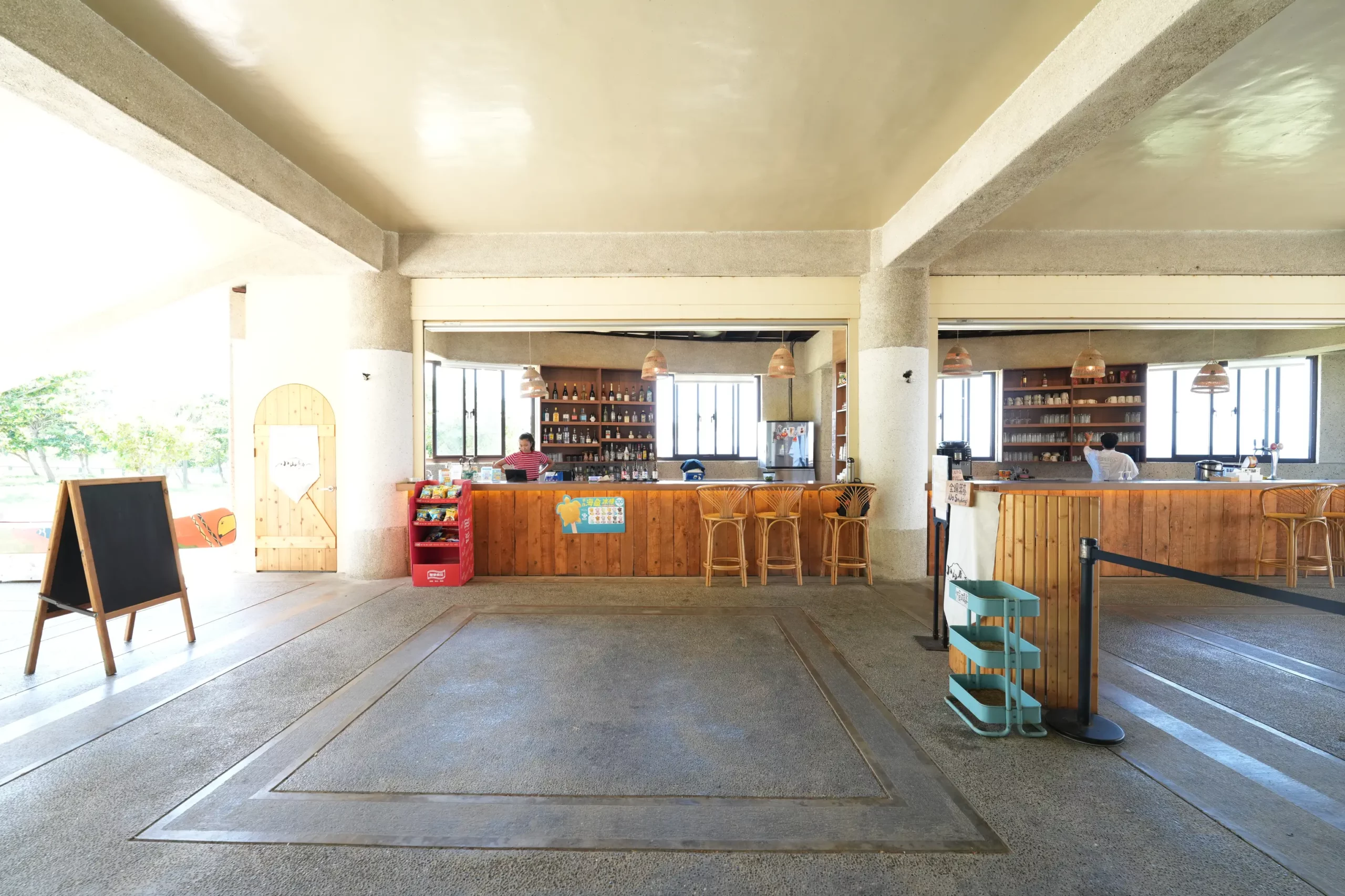 ▼接著會看到園區的吧台,購買門票及點餐都在此處,原先票價為100元 / 人,不過從2025年/10月24號起票價改為200元 / 人,門票可折抵餐點消費,需要特別注意的是,如果有攜帶外食,記得先放在店家提供的外食放置處再進入園區。