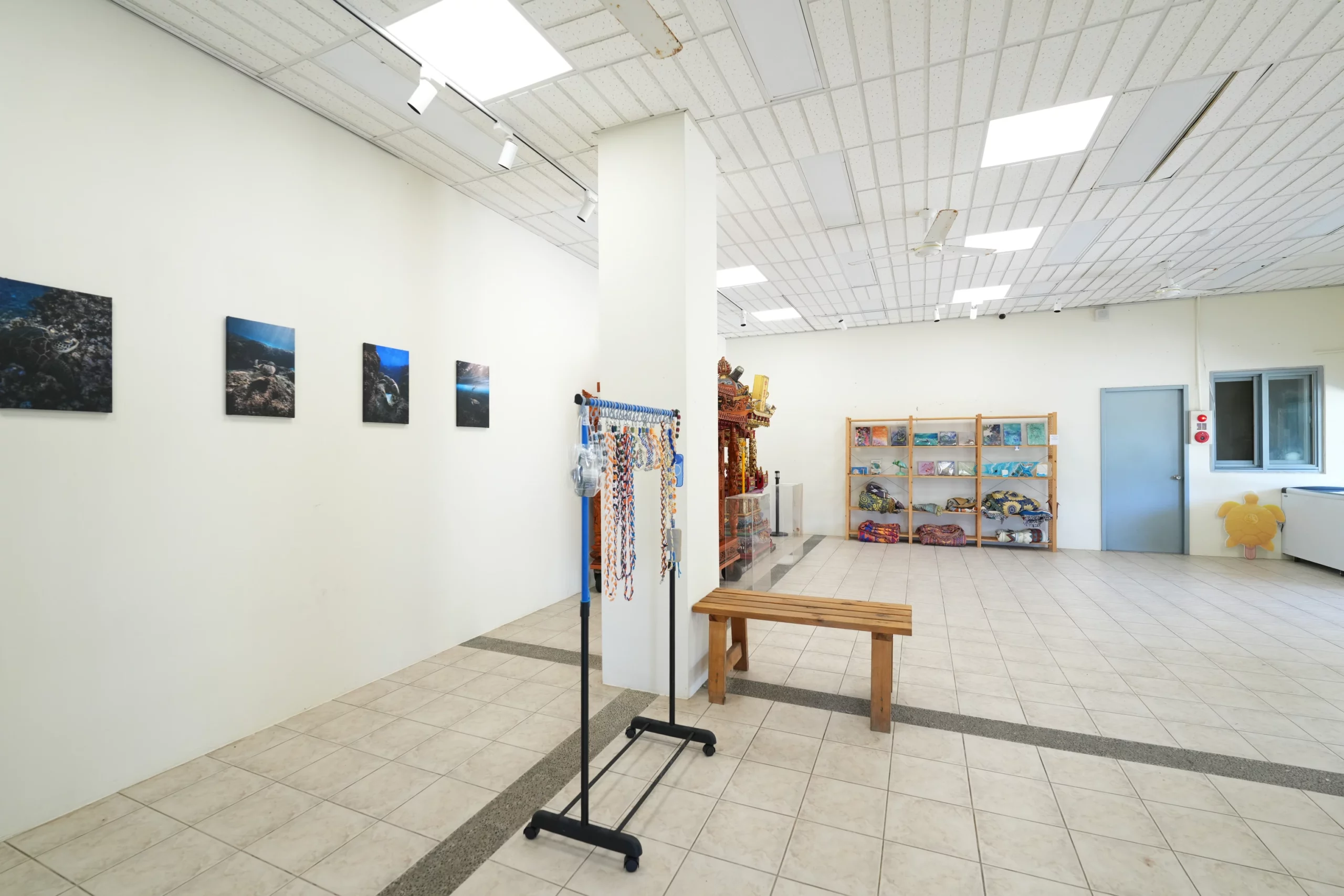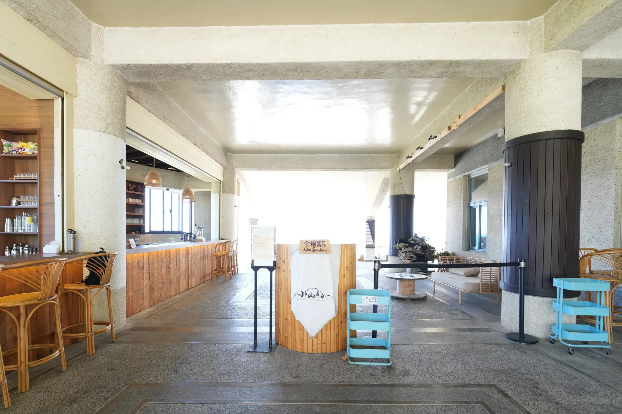 ▼購買門票或點餐後,不妨可以先到吧台前方的在地創生藝術展區,欣賞各式充滿小琉球當地特色的畫作,以及由「臥海潛水」教練拍攝的水下攝影作品,接著再往戶外走,準備迎接遼闊的海景。我們之前有介紹過👉🏻臥海潛水,有興趣可以看看喔!