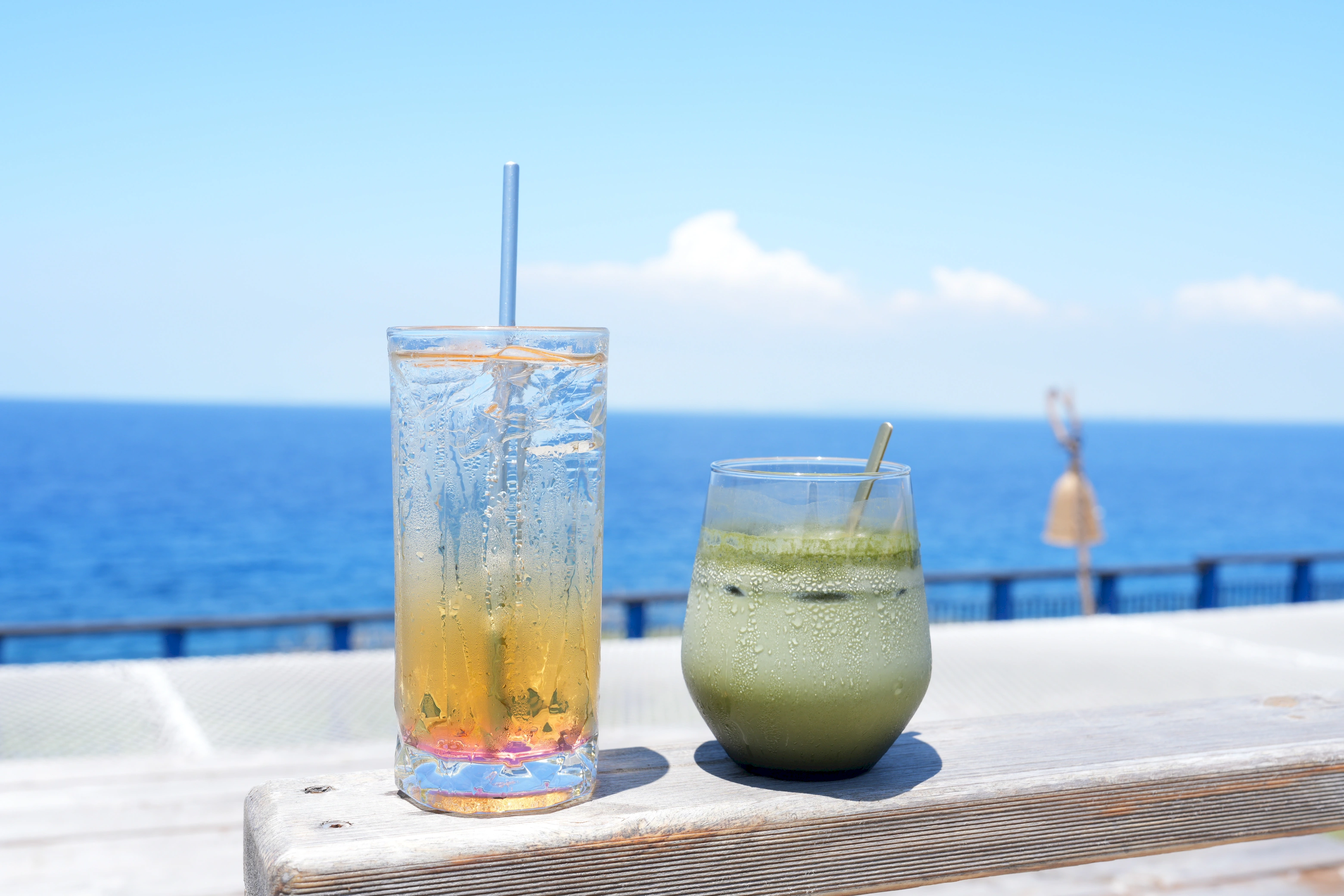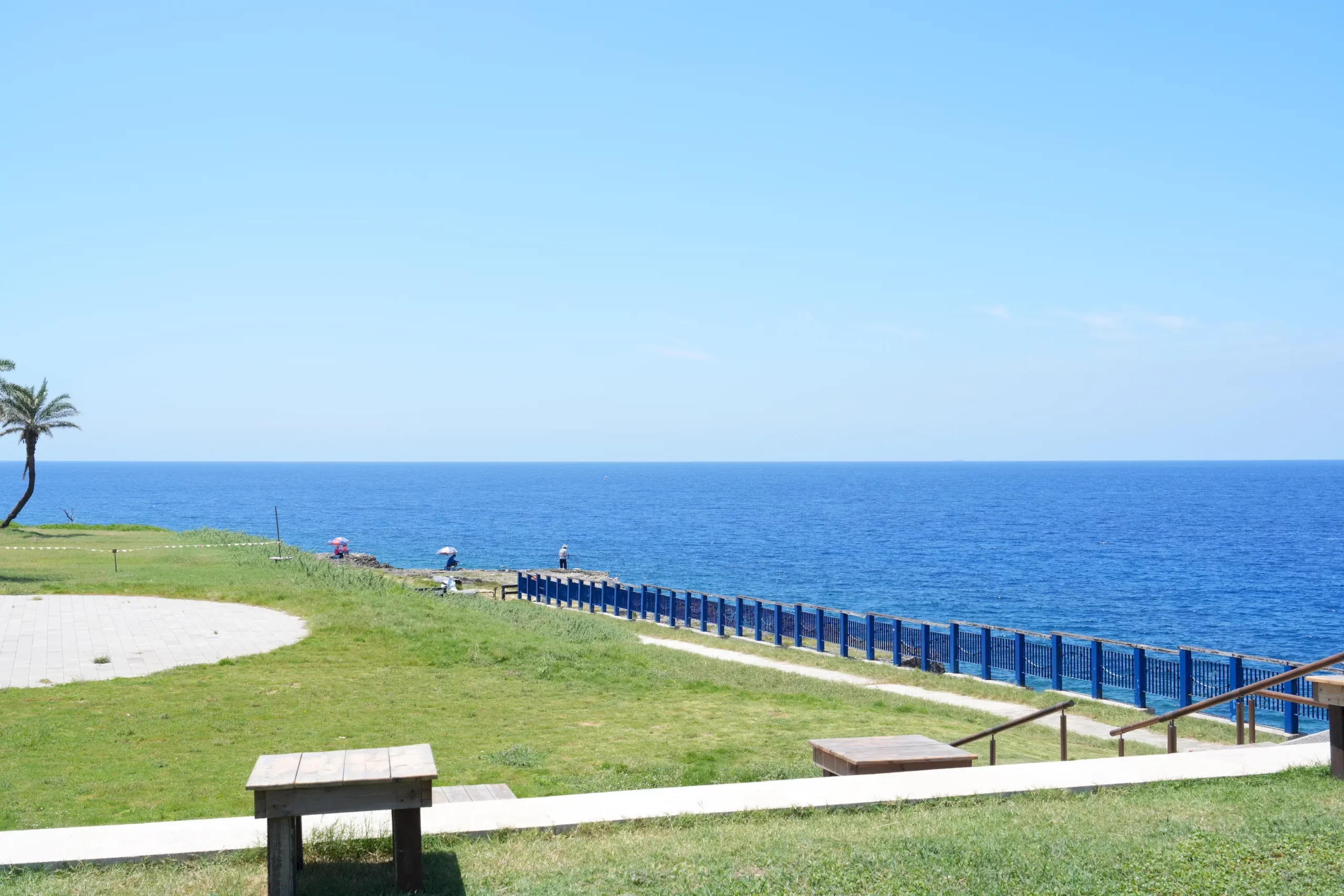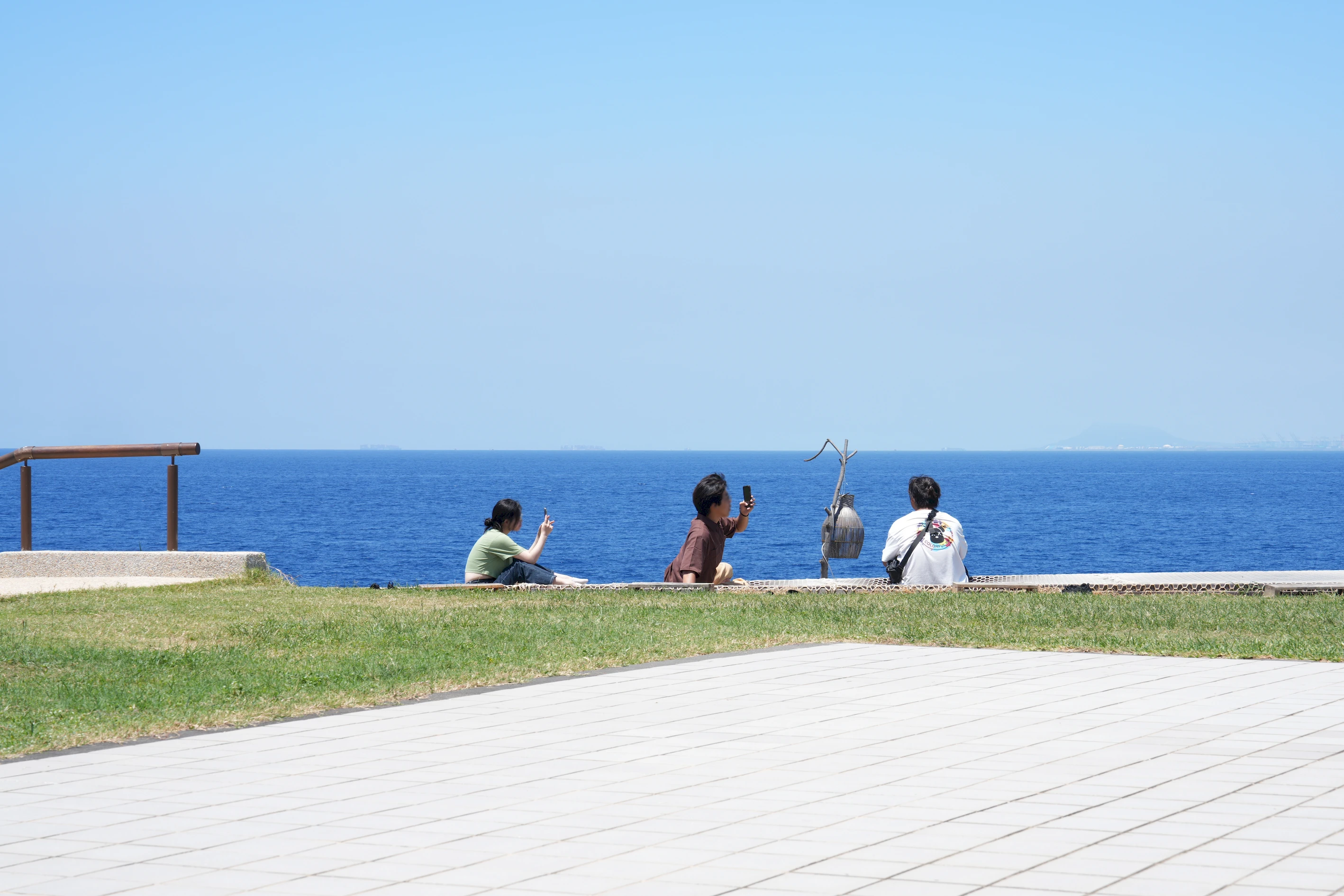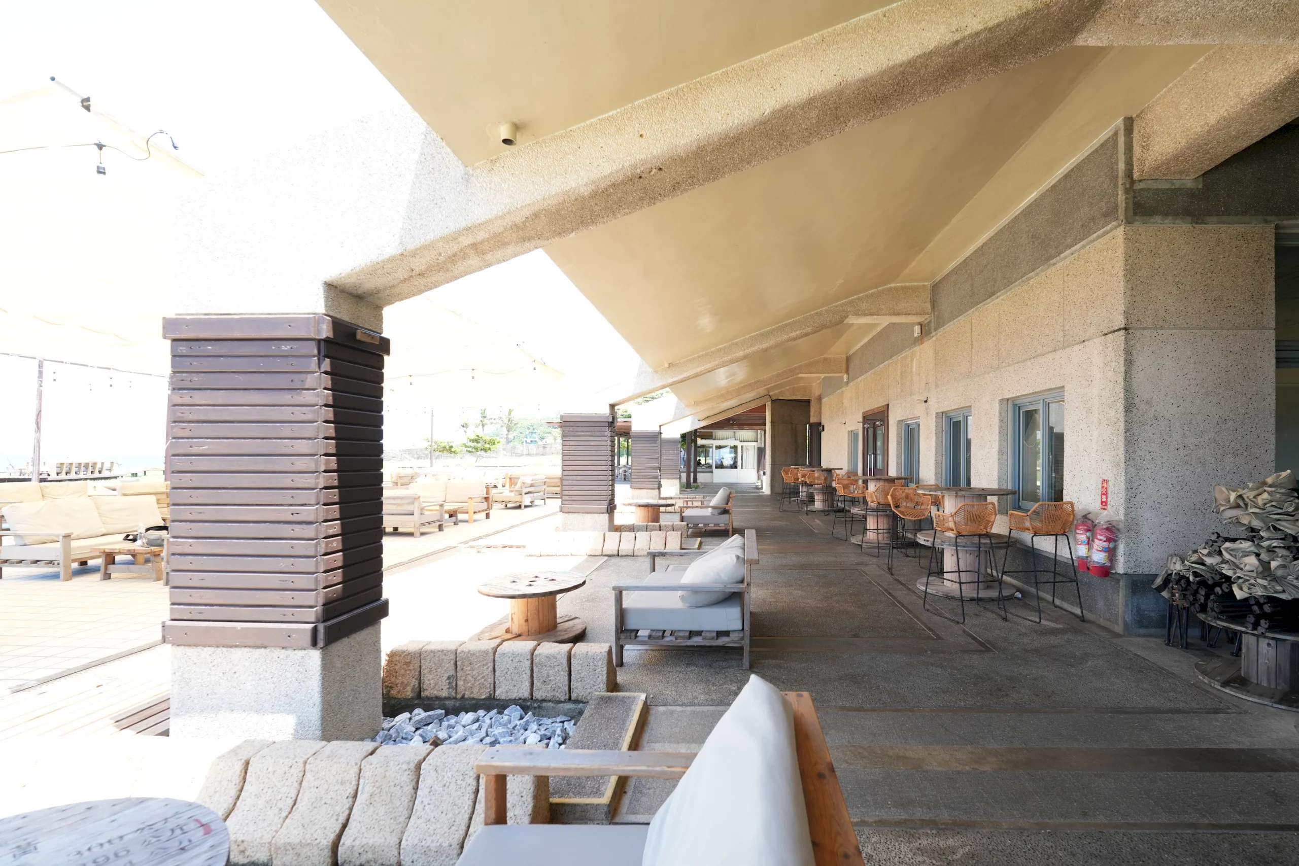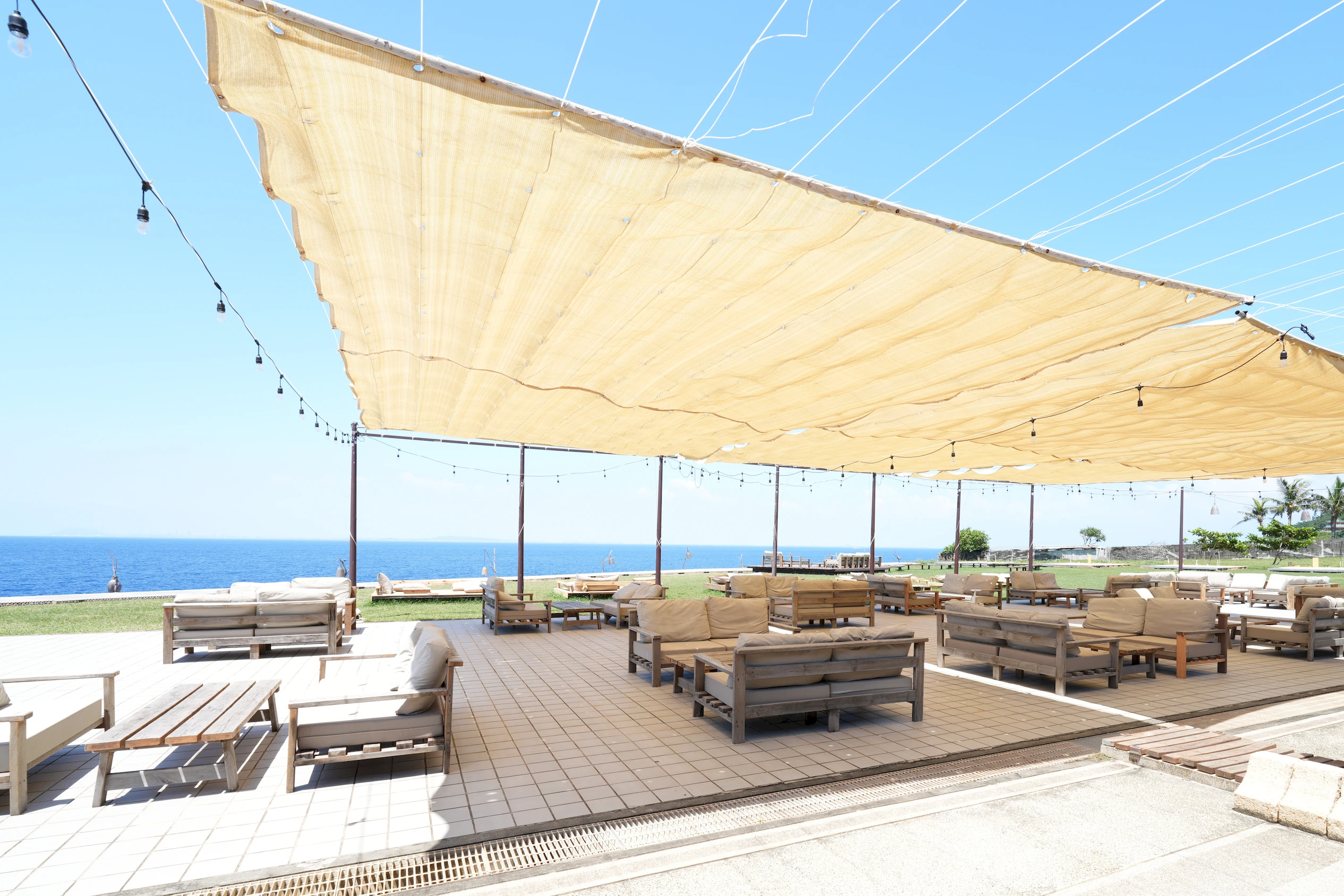 ▼從展區往外走便能看見一望無際的汪洋大海,以及療癒的躺網區和戶外座位區,其中戶外座位區有些設有遮陽帆布,有些則沒有,遊客可以依照個人喜好自由挑選想要的座位,坐下來靜靜享受這片迷人的海景。