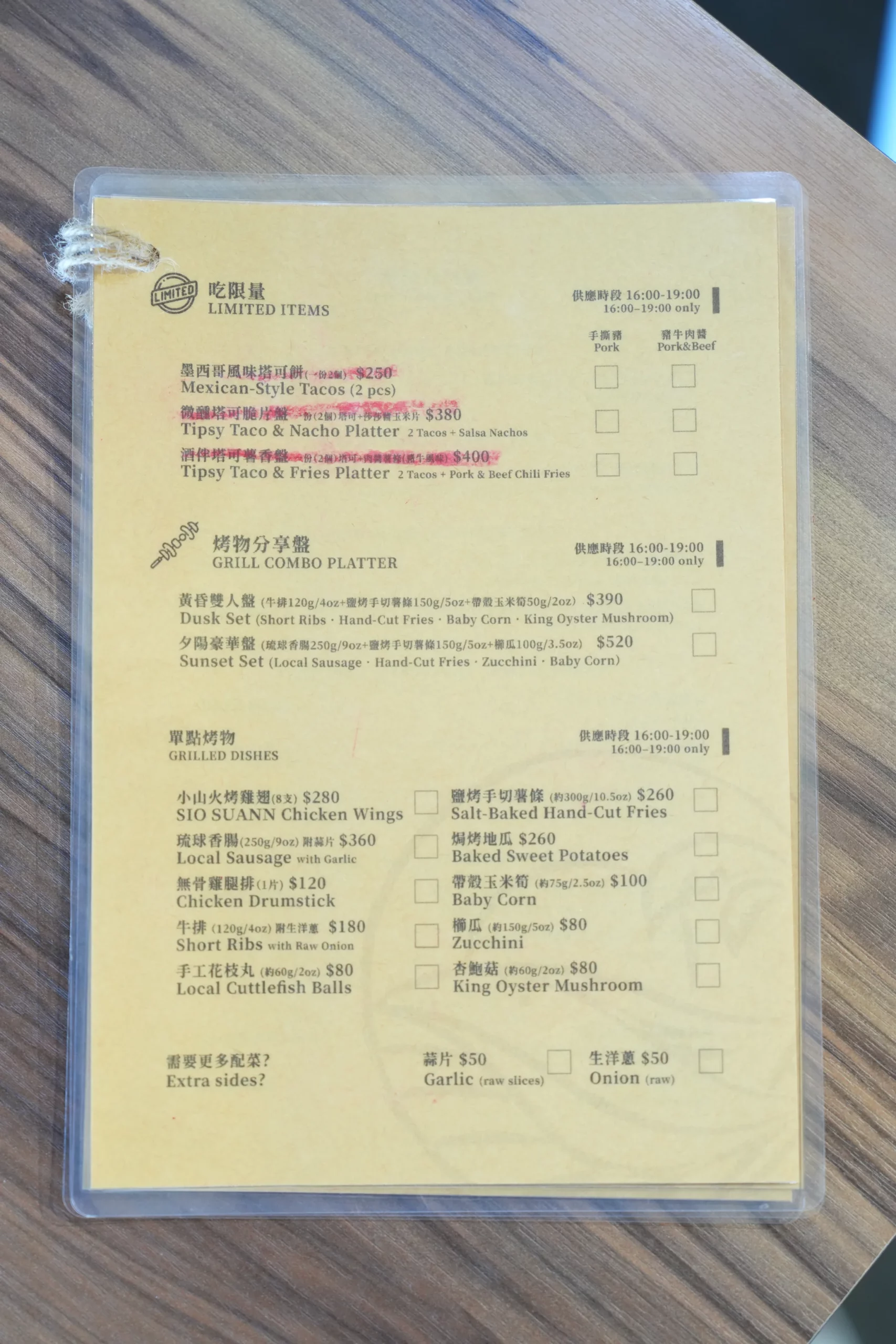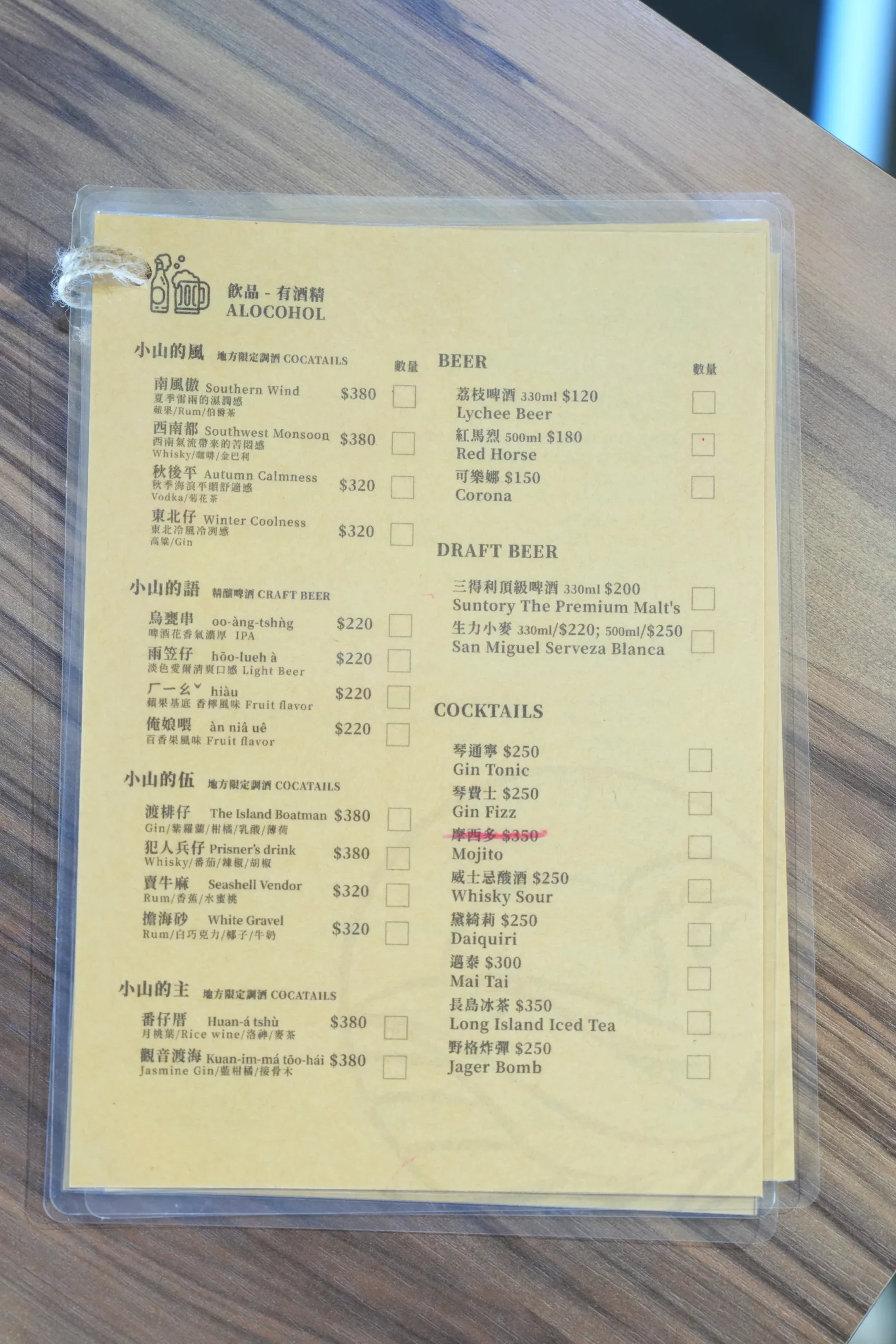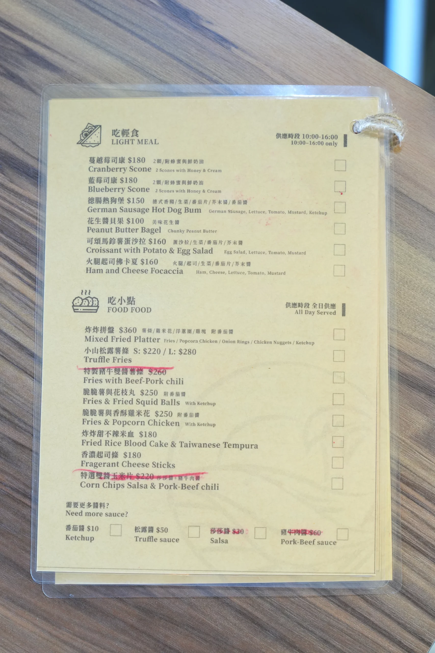 ▼以下是園區內「脈岔夕陽實驗室」的菜單,品項包含輕食、炸物拼盤、咖啡、果汁、各式調酒等,有興趣的朋友們可以點圖放大參考:
