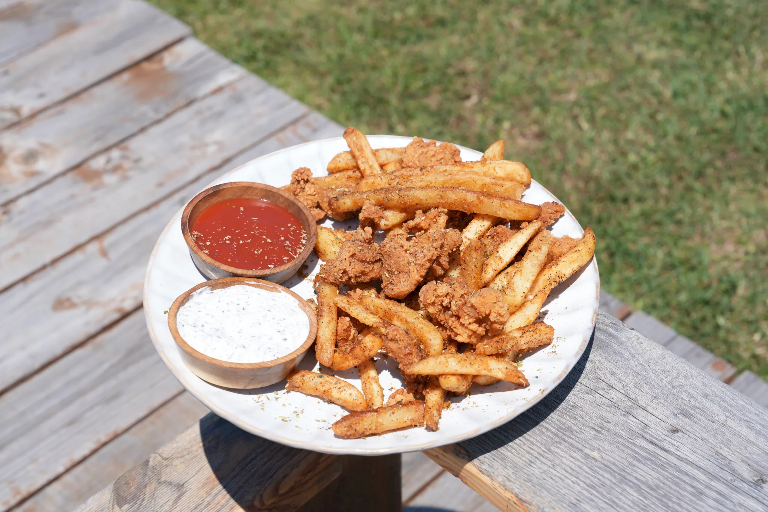 更特別的是,園區內的 「脈岔夕陽實驗室」 也有提供豐富的餐點選擇,包含輕食、炸物拼盤、咖啡、果汁以及各式調酒,無論任何時刻前來,都非常適合點些輕食與飲品,坐下來好好享受難得的放鬆時光。