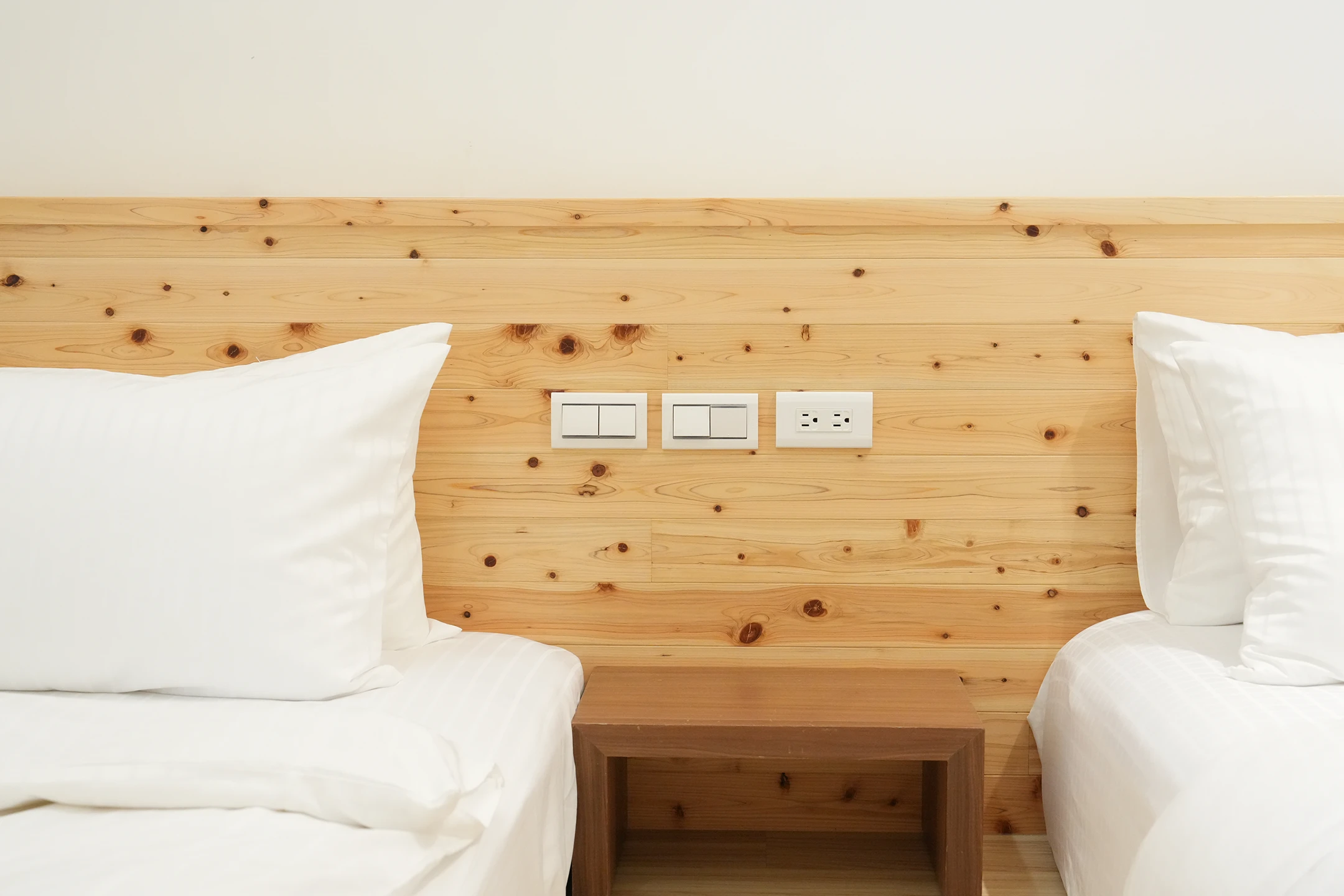 ▼兩張床中間就可以開關燈,還有插座可以充電。