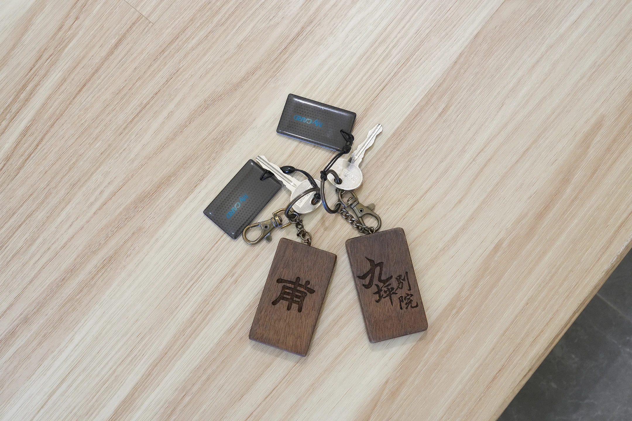 ▼房間鑰匙是刻有「九坪別院」的木質鑰匙圈,非常有質感。