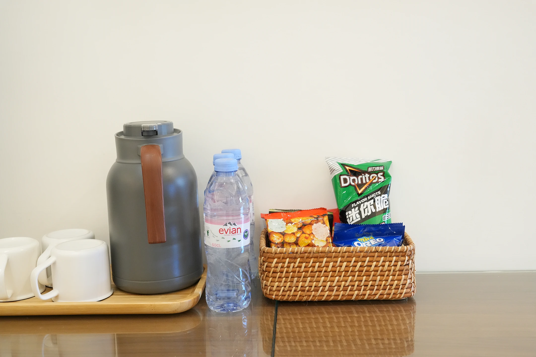 ▼Mini Bar有提供礦泉水、熱水壺、馬克杯,以及多種餅乾可以享用。