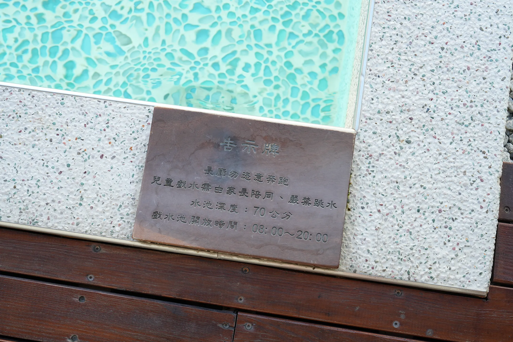 ▼泳池邊有告示牌,不過稍微有點不明顯,戲水池開放時間為:8:00~20:00,嚴禁跳水、兒童戲水需由家長陪同。
