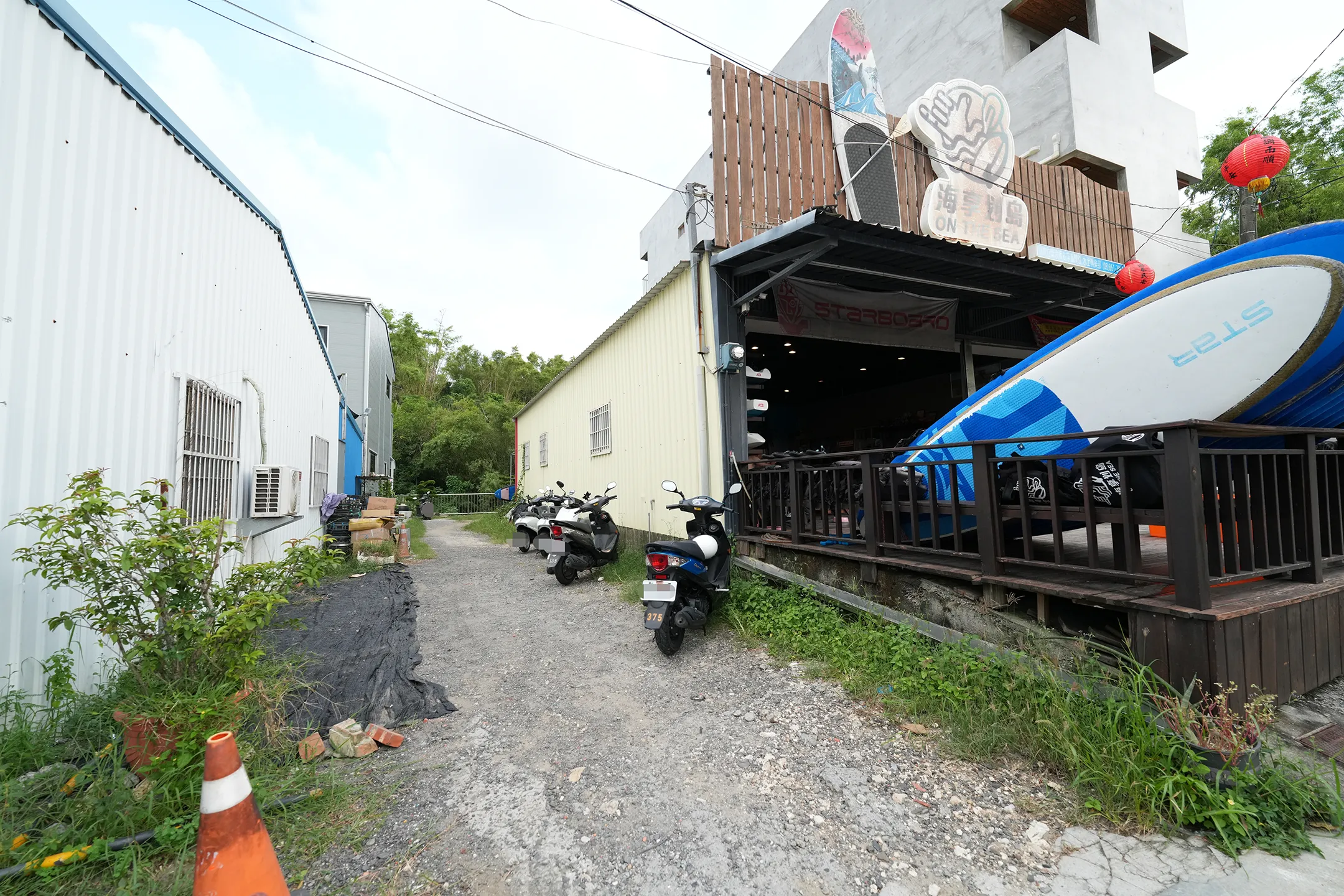 ▼我們租借的機車就停在「海享划島」旁邊的小巷子內。