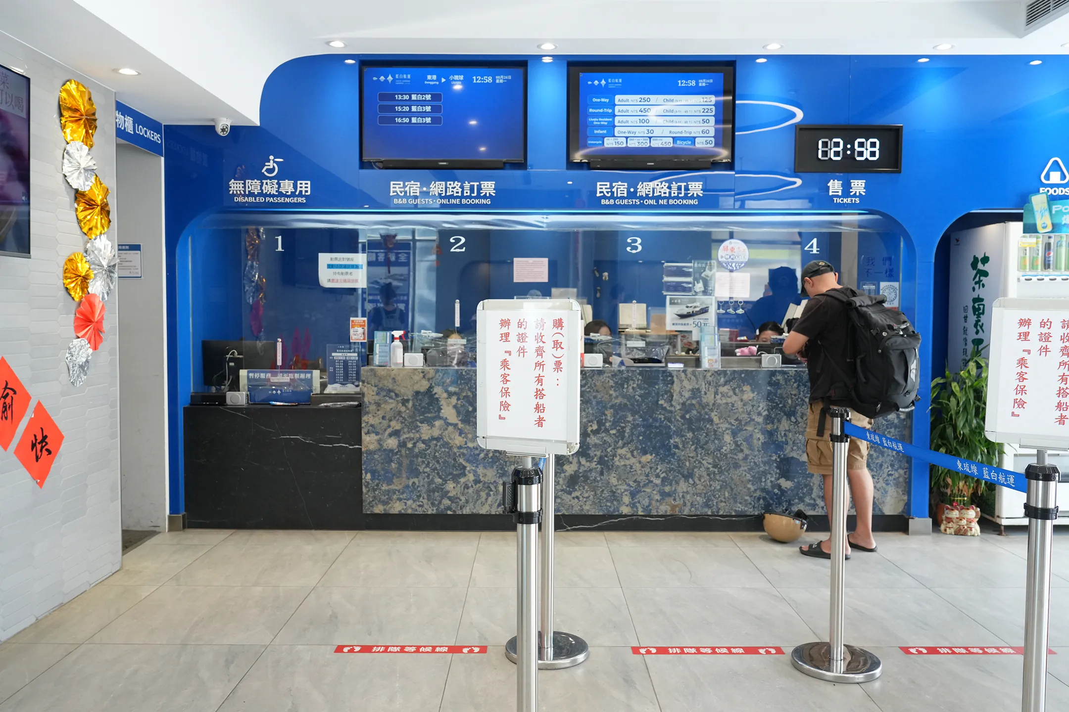 ▼現場售票口分為網路預訂與現場購票兩種窗口。透過民宿代訂船票的話,填寫手機號碼後會收到簡訊,按照步驟操作即可完成取票。搭船當天在售票窗口報上姓名與電話,就能順利取票上船。船班時間彈性,入住當日任一班次都可以搭乘;回程票則在去程日起七天內有效,不用擔心時間太趕。