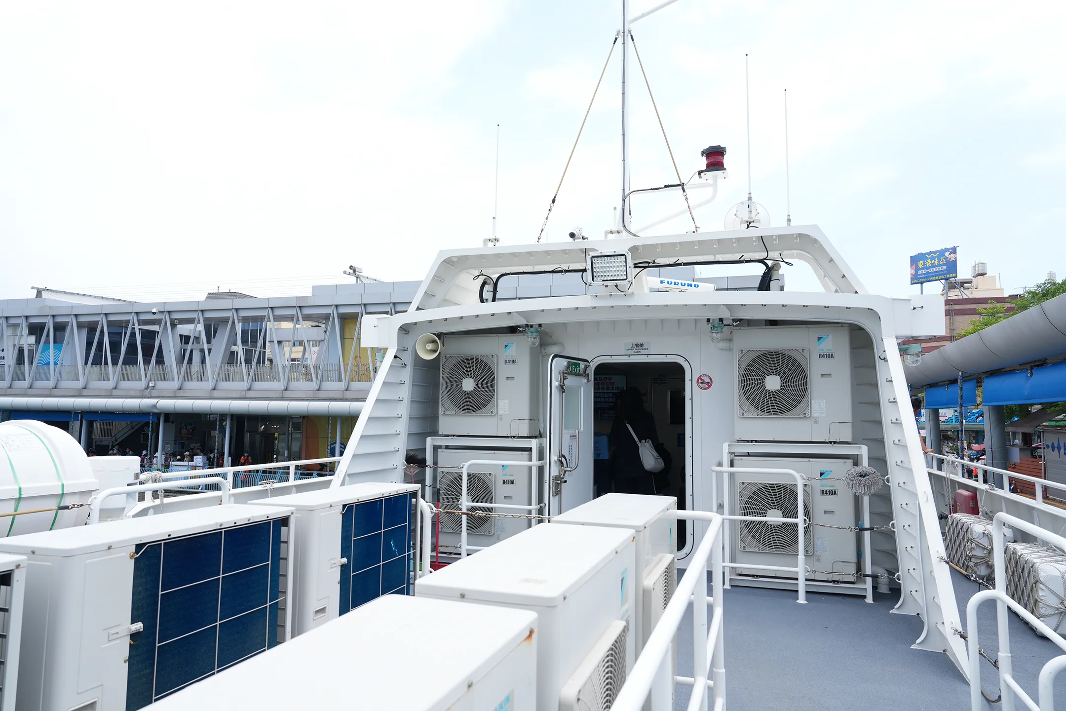 ▼上樓梯就是甲板區,想吹風、看海、感受破浪前行的快感,待在這裡準沒錯。航程大約只有半小時,時間不長,站在甲板上看著海景,半小時其實一下就過了。