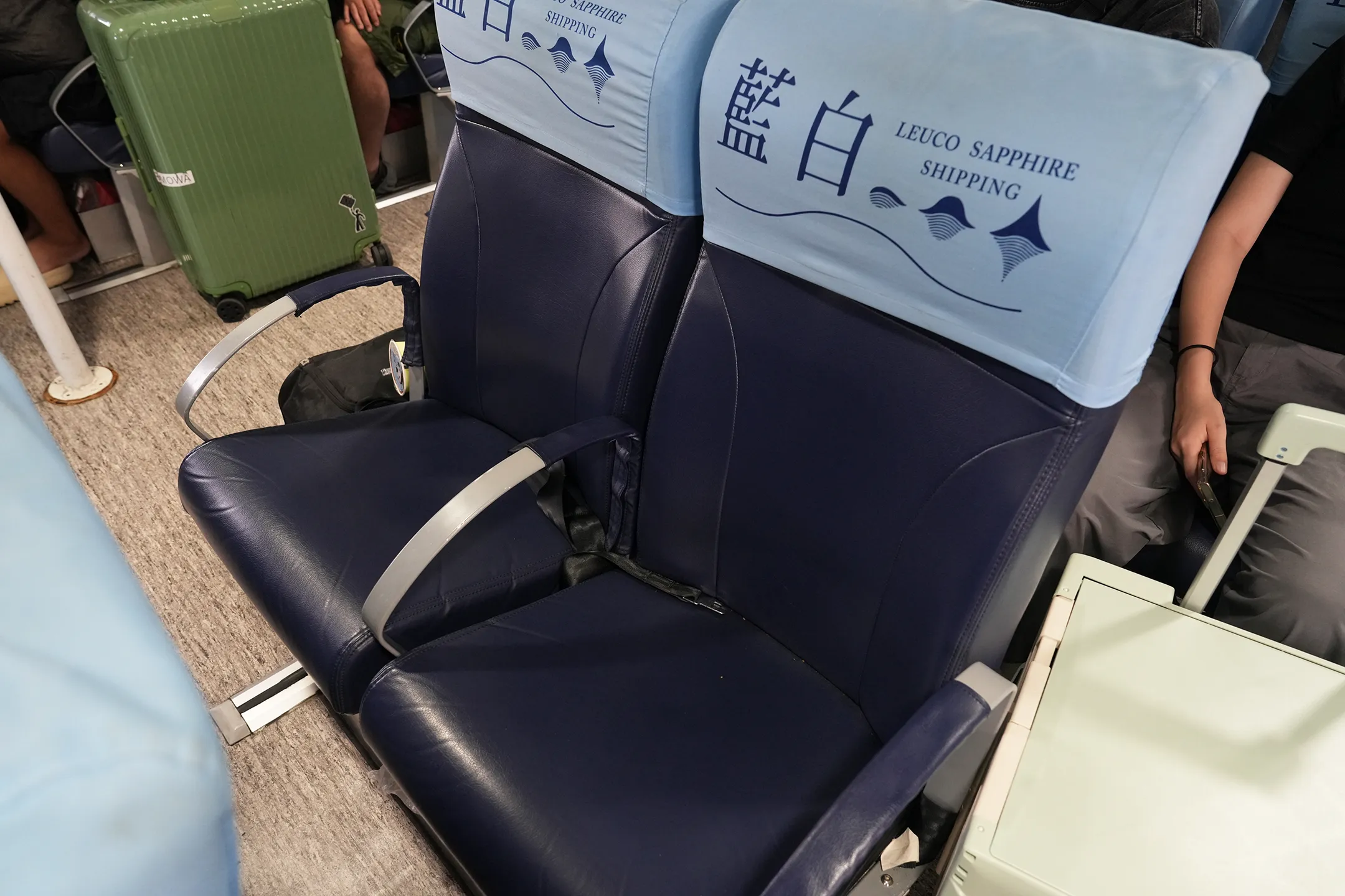 ▼登船後行李就放在座位旁自行看管,沒有專門的置物空間。如果帶了行李箱要特別注意,船行途中晃動不小,記得扶好抓緊,不然行李箱很容易溜走。