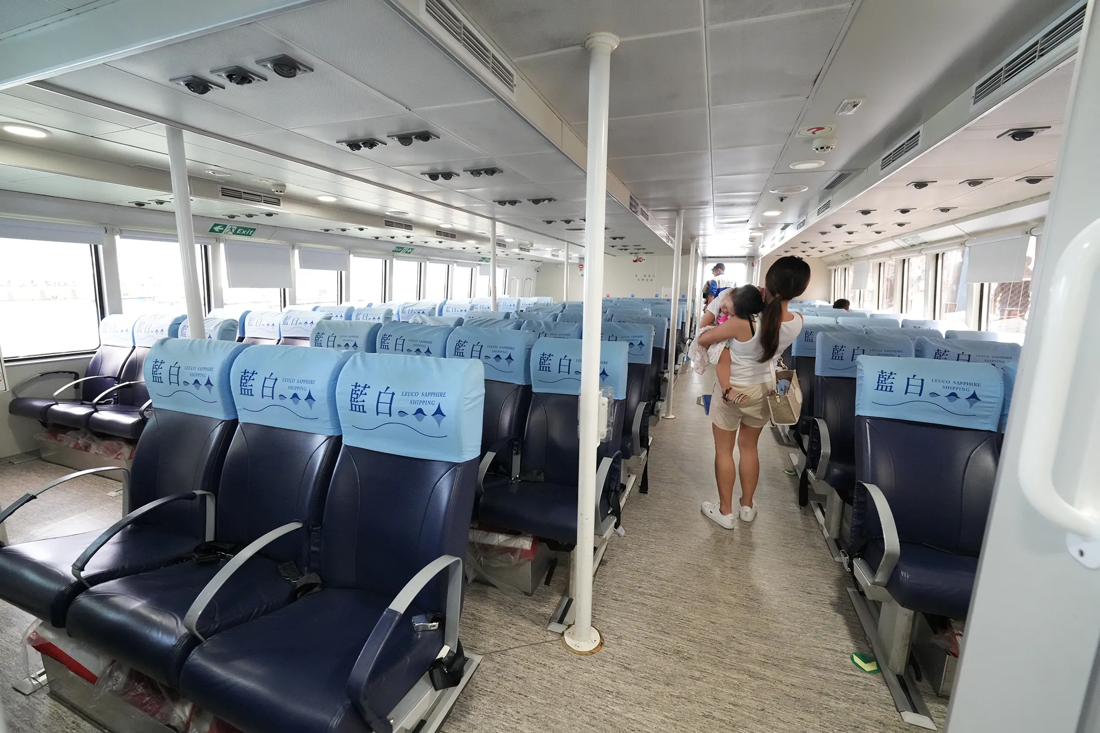▼上船後自由入座,沒有劃位制度,看到空位就坐下。座椅是一般客運等級,舒適度普通,不過航程只有半小時,倒也不至於坐到不舒服。