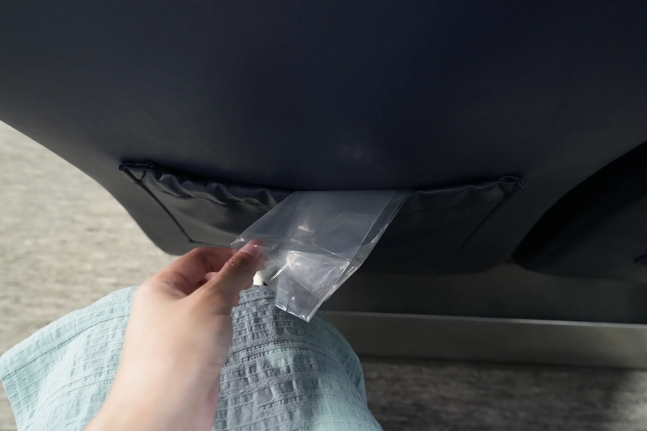 ▼座位上貼心備有透明塑膠袋,專門為容易暈船的旅客準備。海上風浪難以預測,如果腸胃不太好的人,建議上船前可以先備好暈船藥,並且要在搭船前半小時吃藥,以防萬一。