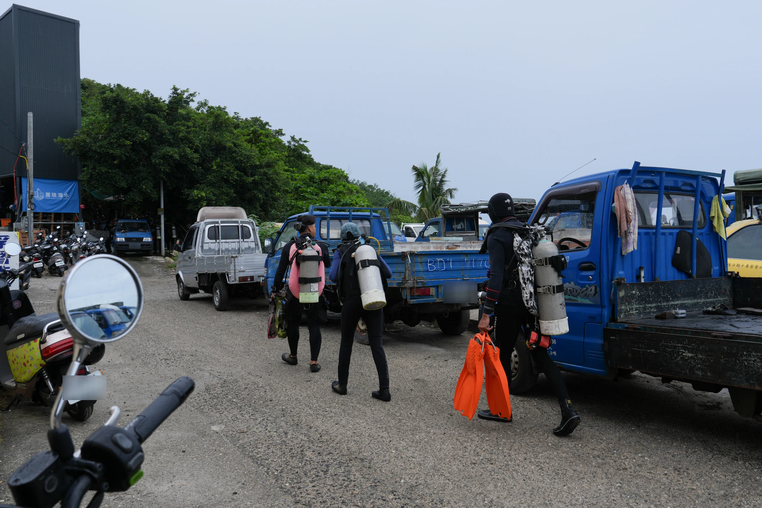 ▼接著到教練的小貨車上把全身裝備脫掉後,就跟著他一起回到潛店。