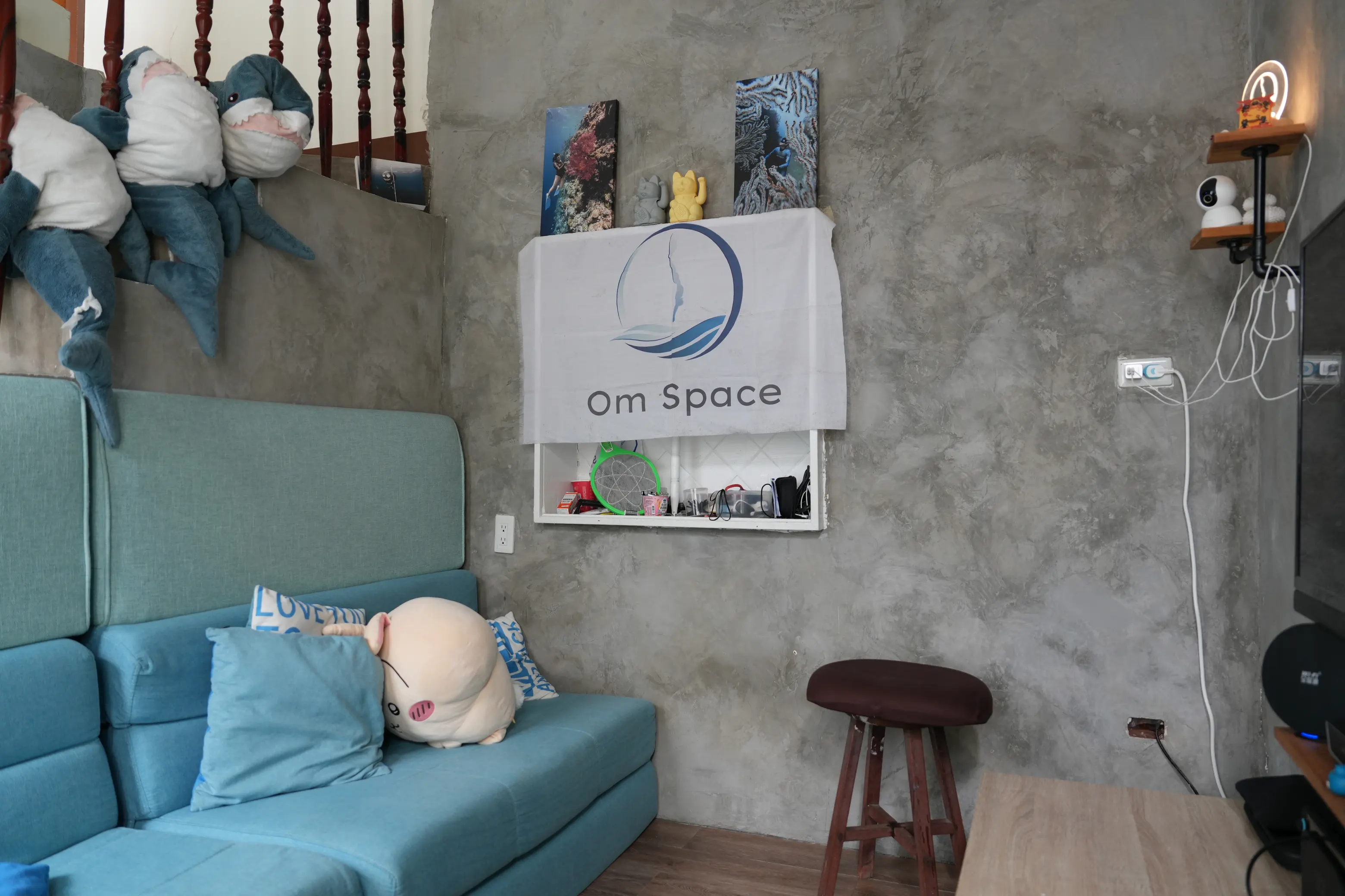 「Om Space」的全名是「Om Space平行時空」,「Om」這個字在瑜珈文化中被視為萬物的起源,也是來自於宇宙震動的意思,而「Om Space」就是希望每一位學員下潛時,便開啟了你與海洋的連結,進入另一個不同的空間裡,進而放下城市的喧囂,靜靜感受海流的輕拂,享受前所未有的自由與寧靜。