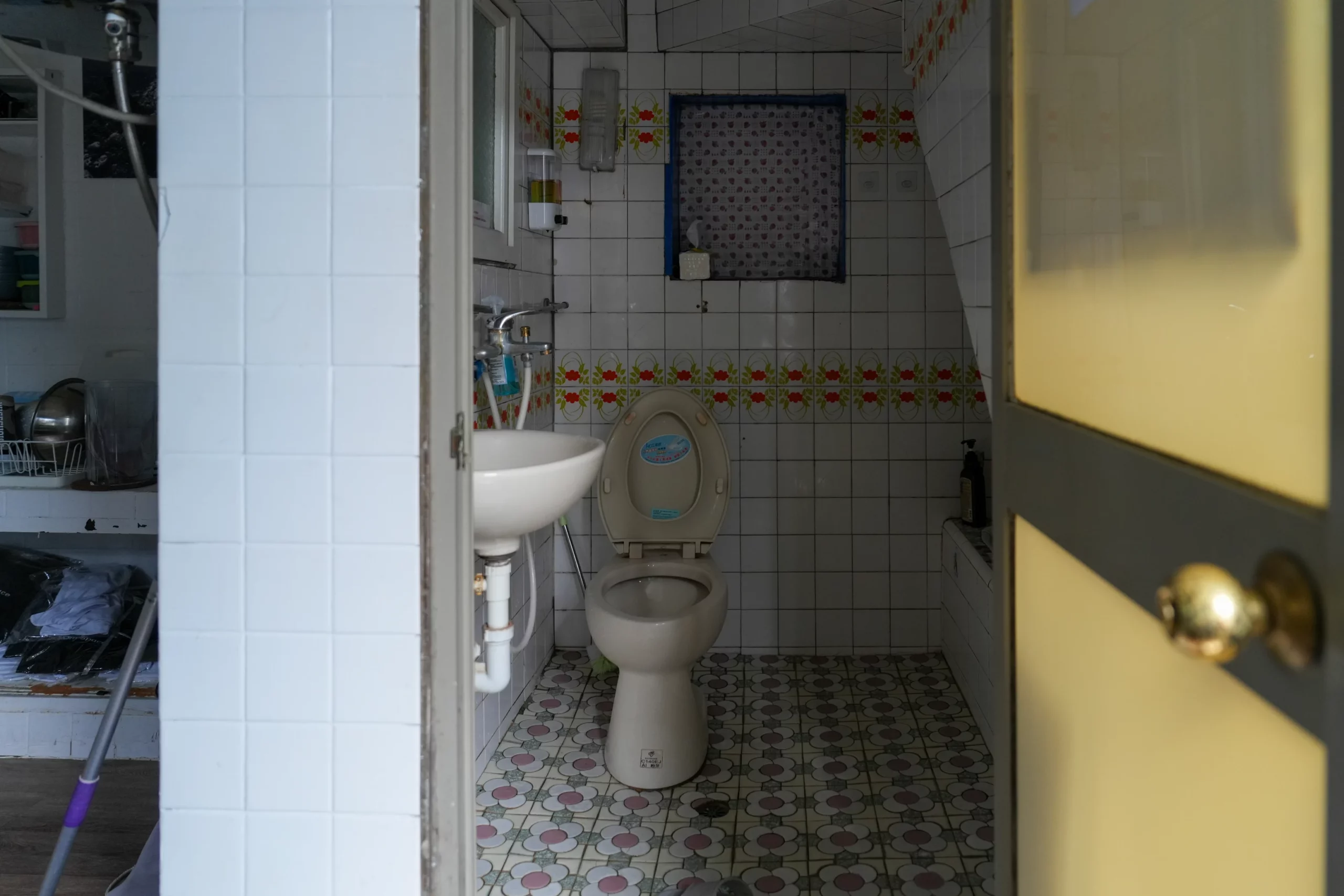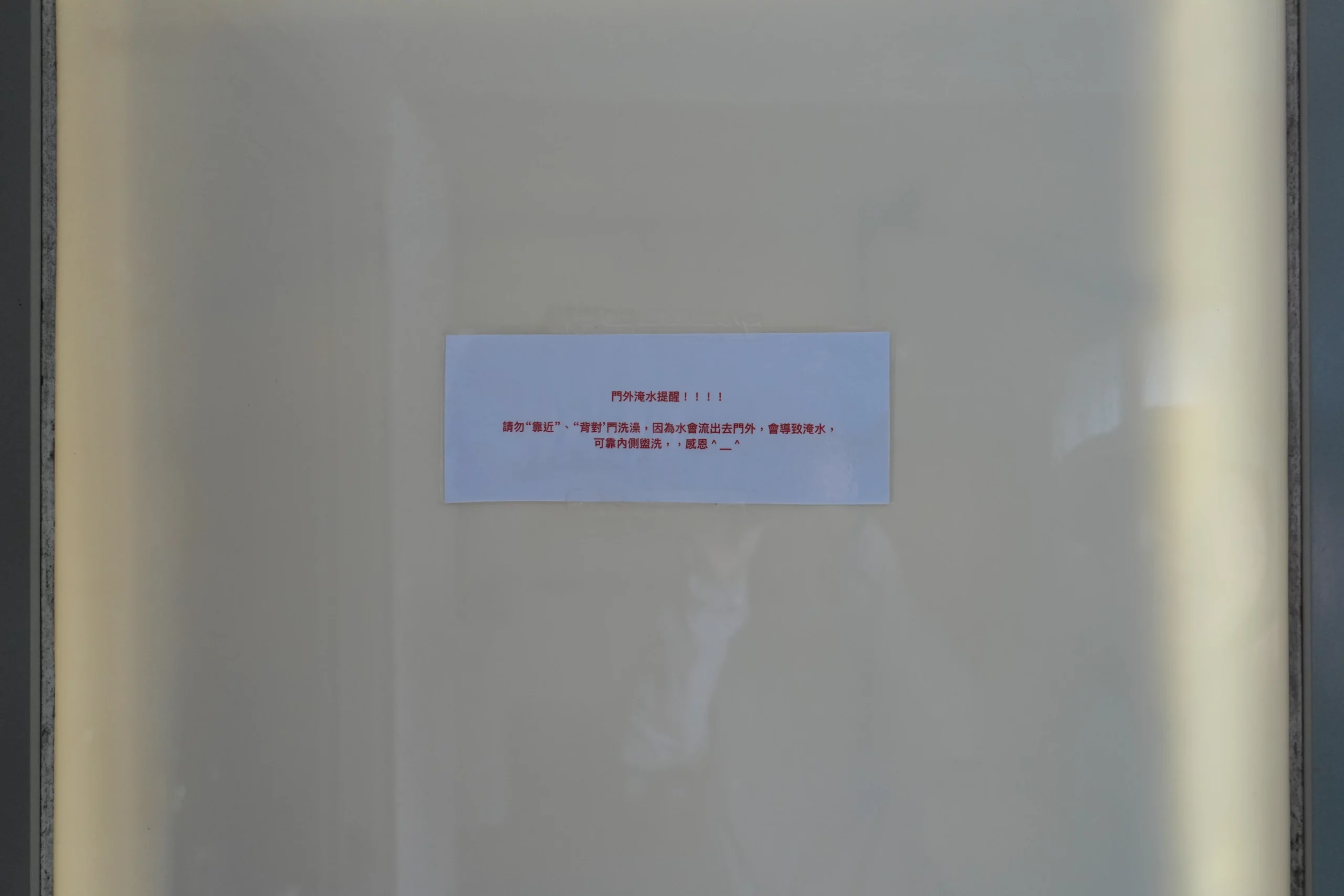 ▼憋氣與平壓練習結束後,教練會帶著學員更換自潛專用的防寒衣,更換前可以先上個廁所,不過廁所內的窗戶僅用一條棉布遮擋,而如果是在潛水結束後想要盥洗,除了需要付50元 / 人的沖洗費外,盥洗時也只能遠離廁所門並盡量朝向廁所內側沖洗,現場也沒有提供毛巾,使用起來會讓人覺得比較不便且害羞。