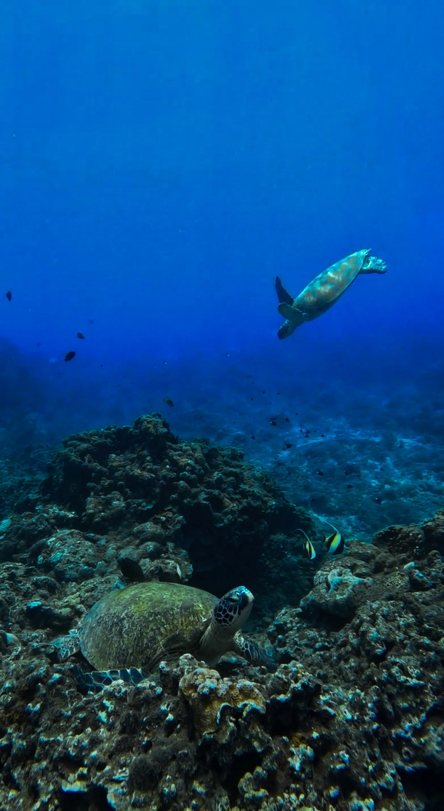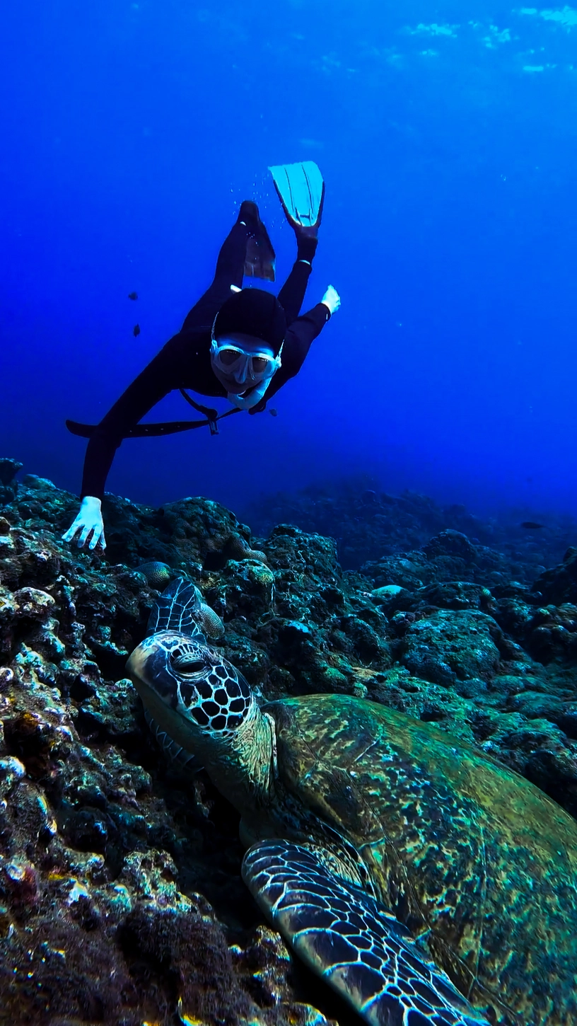▼下潛的過程中,朋友還巧遇了一隻趴在石頭上休息的海龜,而教練也適時地捕捉下她與海龜同框的瞬間,讓這麼難得的畫面得以被完整保存,也成為了這趟潛水體驗中最難忘的回憶。