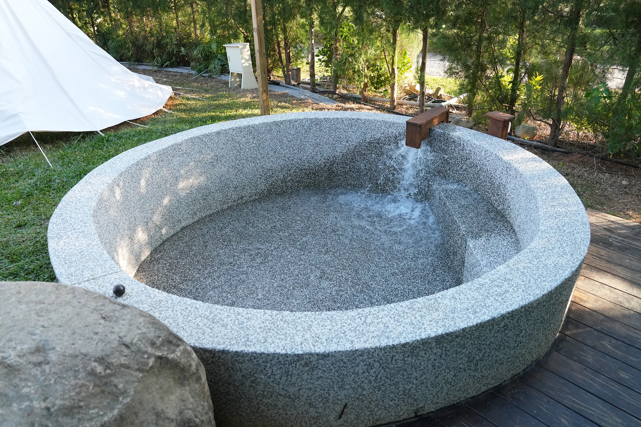 「自然圈農場」是一處令人驚喜的度假勝地,從踏入園區的那一刻起,就能感受到無微不至的貼心服務,園區採取預約包圈制度,確保每組遊客都能擁有專屬的私密空間,盡情享受不被打擾的悠閒時光。住宿設施相當完善,豪華帳篷內配有舒適床鋪、冷暖空調及獨立衛浴,讓露營也能享有飯店般的舒適體驗。最特別的是農場引入碳酸氫鈉溫泉,夜晚能在星空下泡湯,徹底放鬆身心,這樣的享受實在難得。