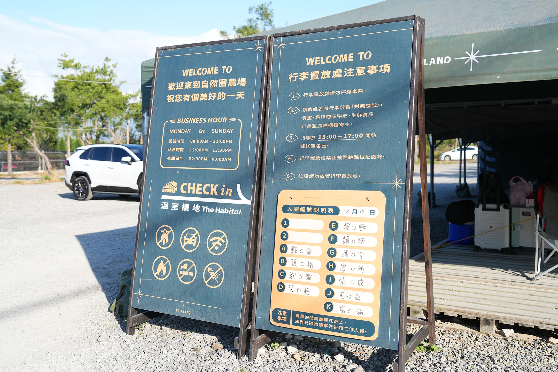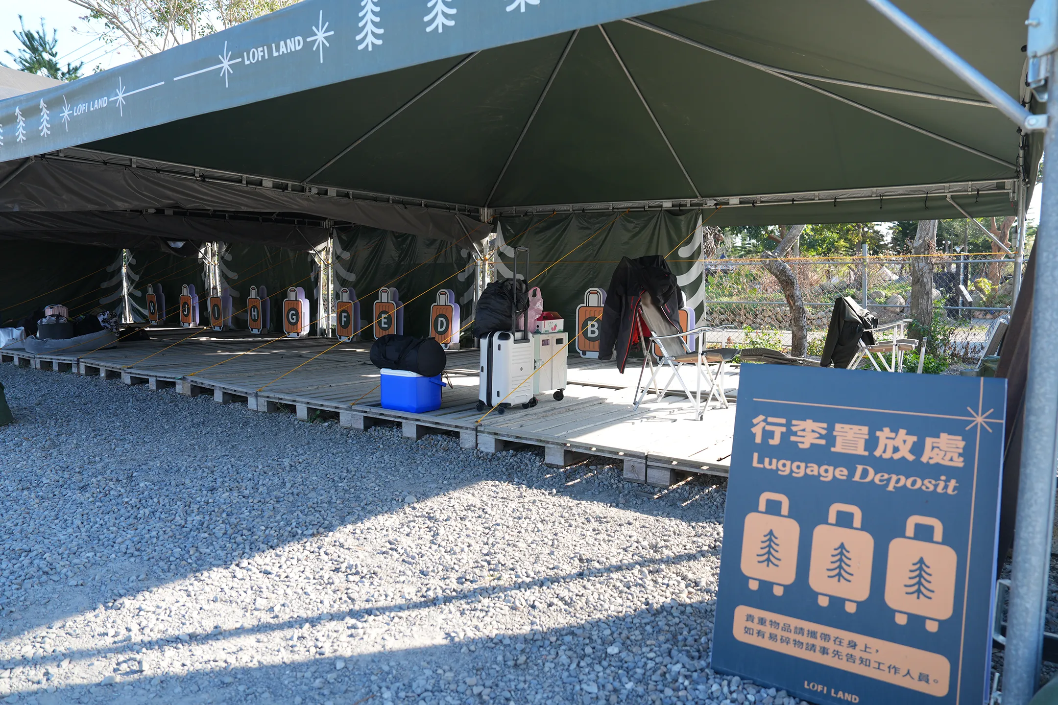 ▼由於營區內幾乎都是石子路,路面凹凸不平,拖行李箱會相當不好走。因此園區貼心設置了「行李置放處」,讓遊客將行李暫時寄放,再由工作人員直接送到我們住的營區。這樣的服務省去了在石子路上拖行李的辛勞,讓我們能夠輕鬆入住,十分貼心便利。