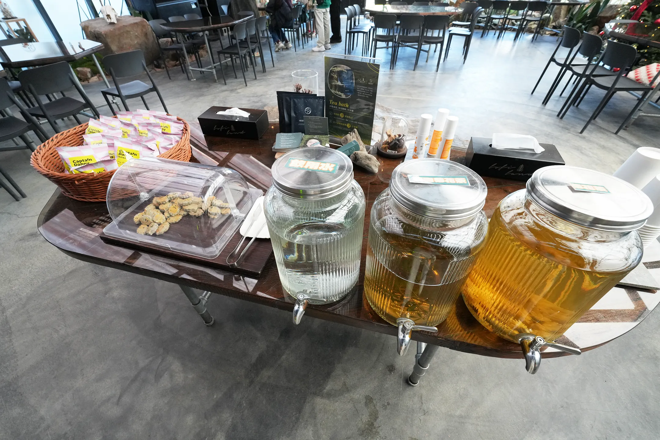 ▼報到完後,可以在溫室棲地享用簡單的下午茶,現場提供各式餅乾和多種飲品選擇。