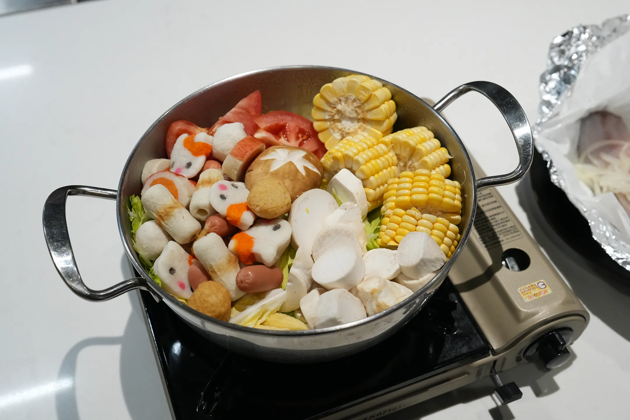 ▼蔬菜湯的製作方式也超級簡單方便,所有的新鮮蔬菜、火鍋料都已經事先處理好並整齊擺放在鍋子裡待命,完全不需要洗切備料。只要將準備好的高湯倒入鍋中,放在爐火上加熱,等待湯水沸騰翻滾,不一會兒,一鍋熱呼呼、香氣四溢又營養滿分的蔬菜湯就大功告成了。