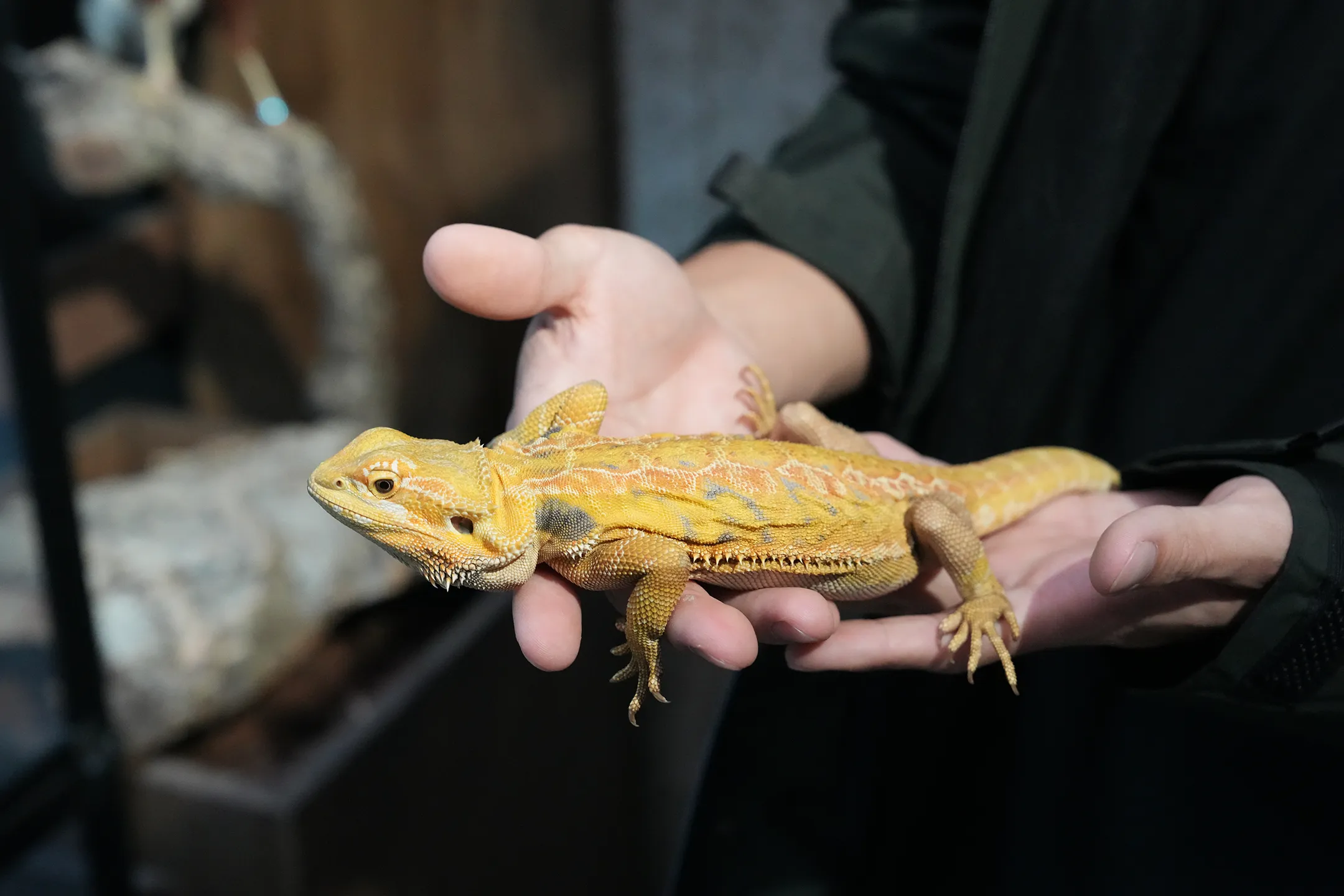 ▼除了認識靜態的標本展示外,標本館最令人驚喜的是居然還可以看到活生生的赫克力士長戟大兜、鬆獅蜥等昆蟲及動物。這些活體動物被妥善飼養在適合的環境中,讓我們能近距離觀察牠們的真實樣貌與活動狀態。導覽員會讓遊客小心觸摸或近距離觀察,親手感受鬆獅蜥溫暖的體溫和粗糙的鱗片,或是看著獨角仙在手中緩緩爬行。這種從標本到活體的對照體驗,不僅更加生動有趣,也讓我們對這些生物有更真實深刻的印象。