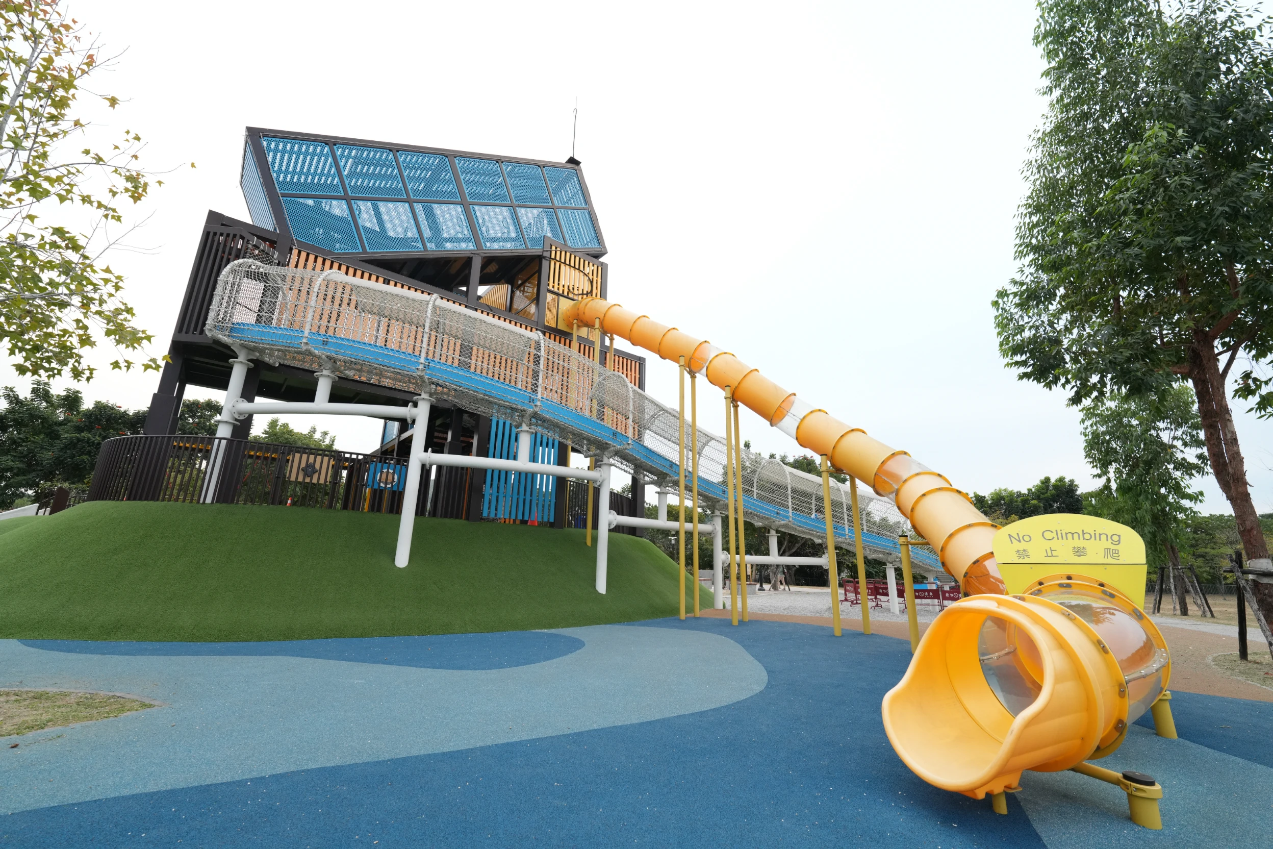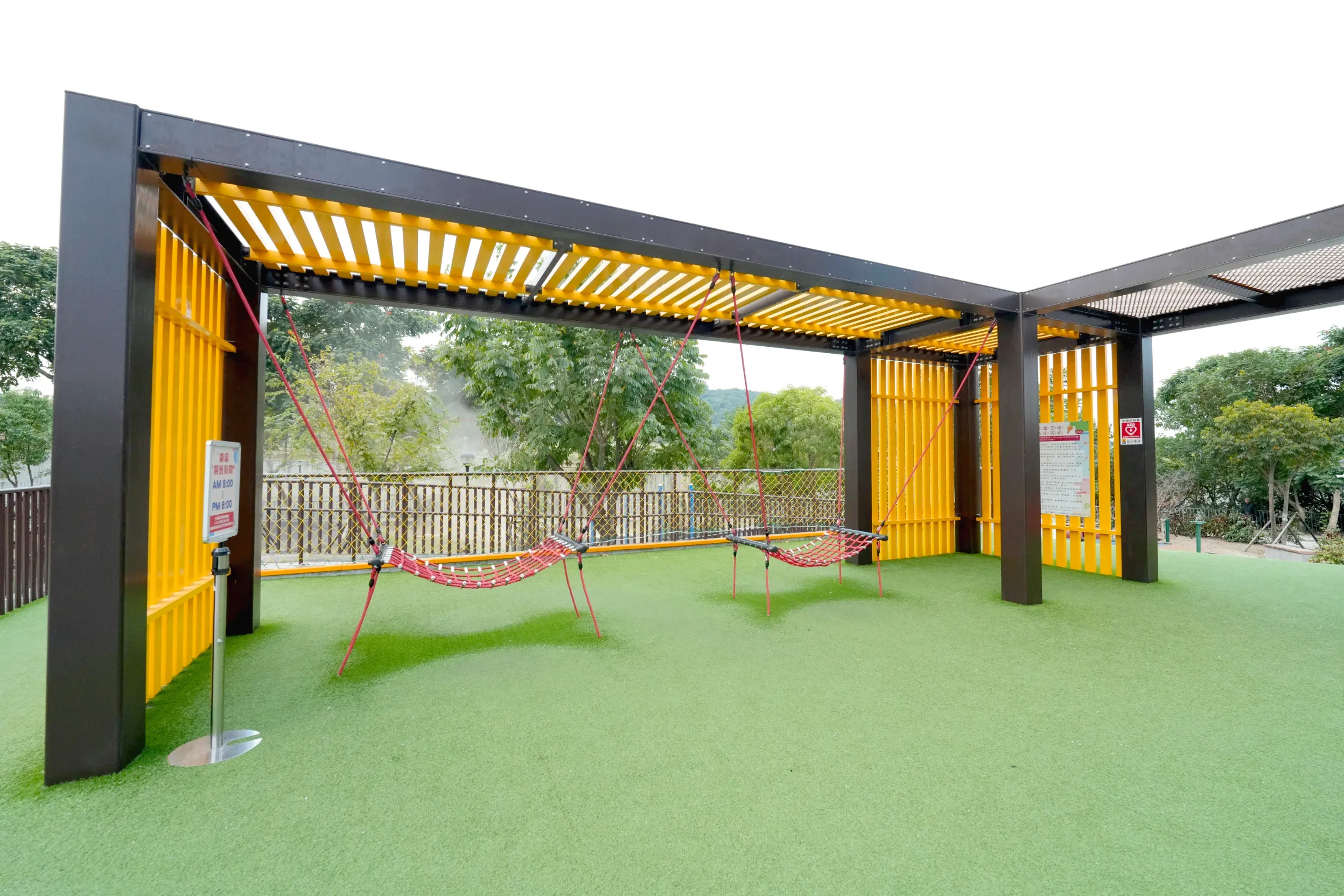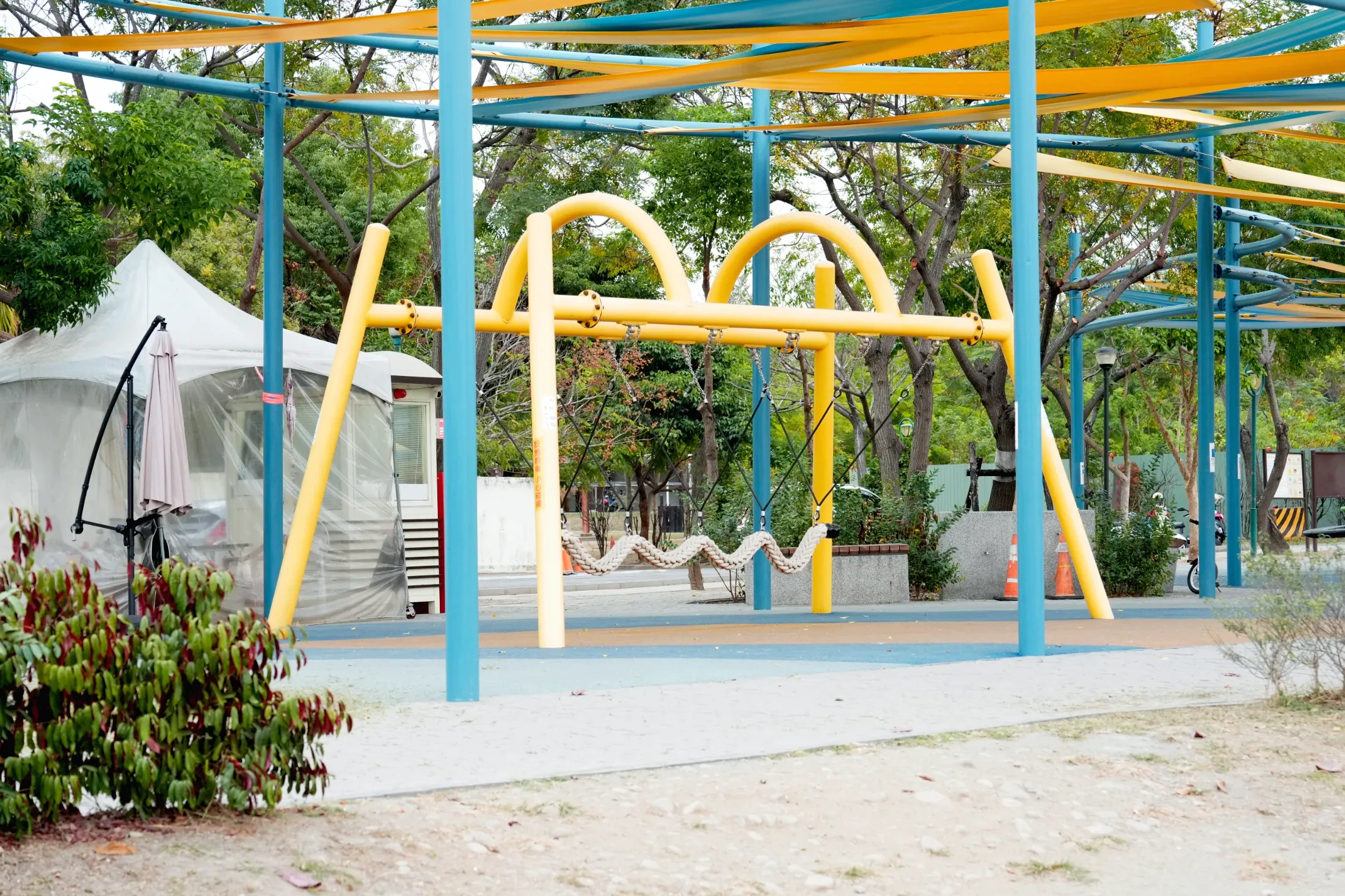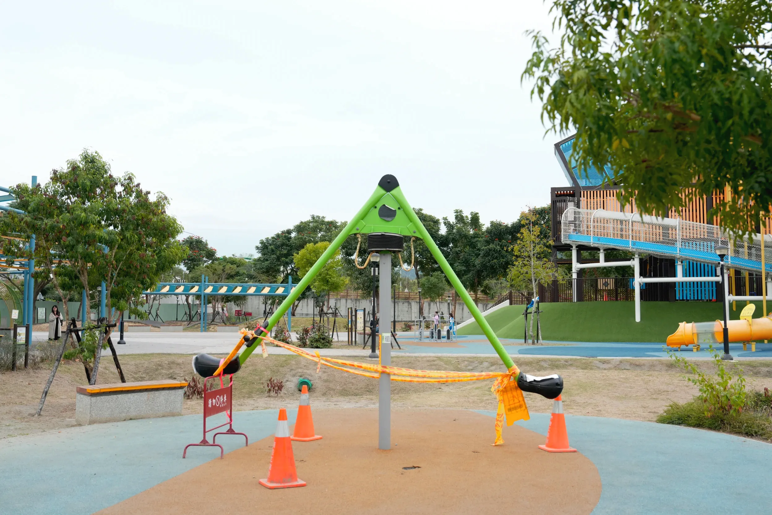 ▼公園內還有很多不常見的遊樂設施很適合給孩子們挑戰,5到12歲的小朋友可以試試擺盪大索,13歲以上的大朋友也有土星旋轉木馬可以玩,算是大人和小孩都能同樂的公園,不過很可惜,當天去的時候土星旋轉木馬剛好在維修,只好下次再來了。