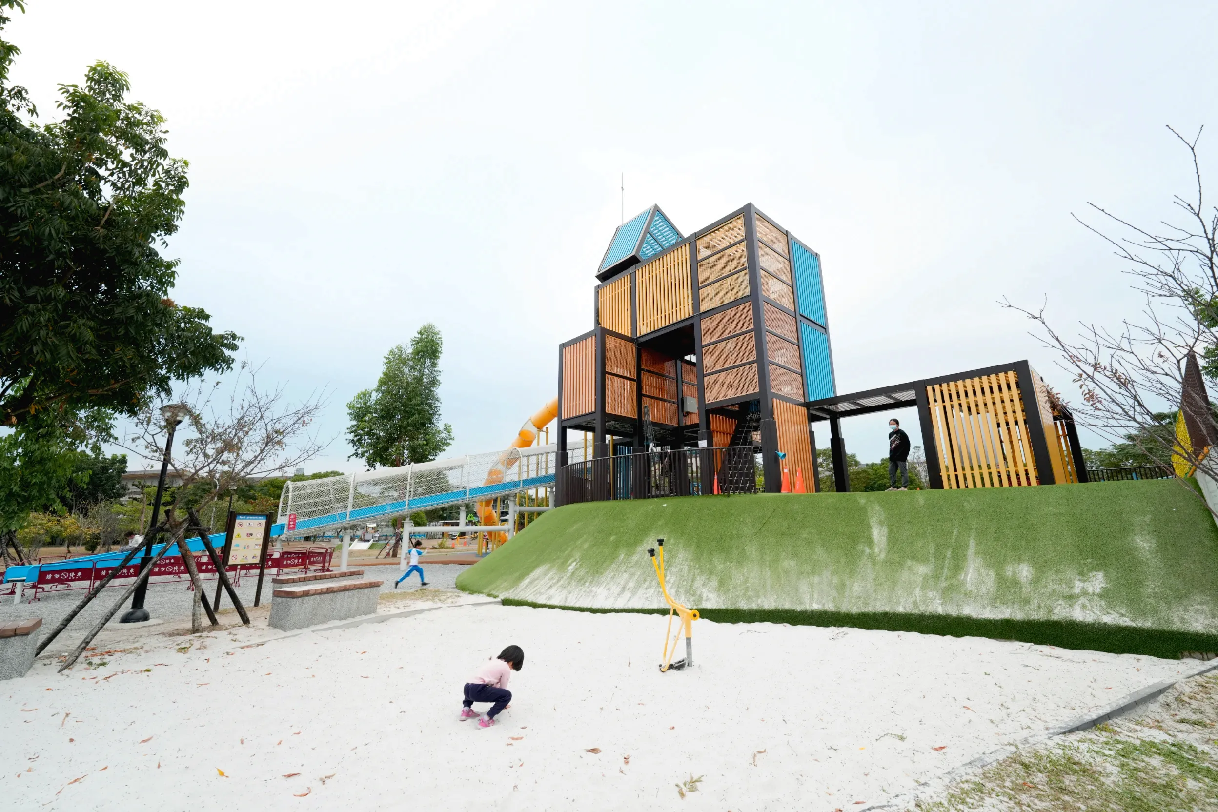 ▼如果家裡的小朋友年紀比較小,也有幼兒組合遊具、土堤式滑梯和挖土機沙坑比較簡單的設施,不過遊玩時還是都要有家長陪同,確保孩子安全喔!