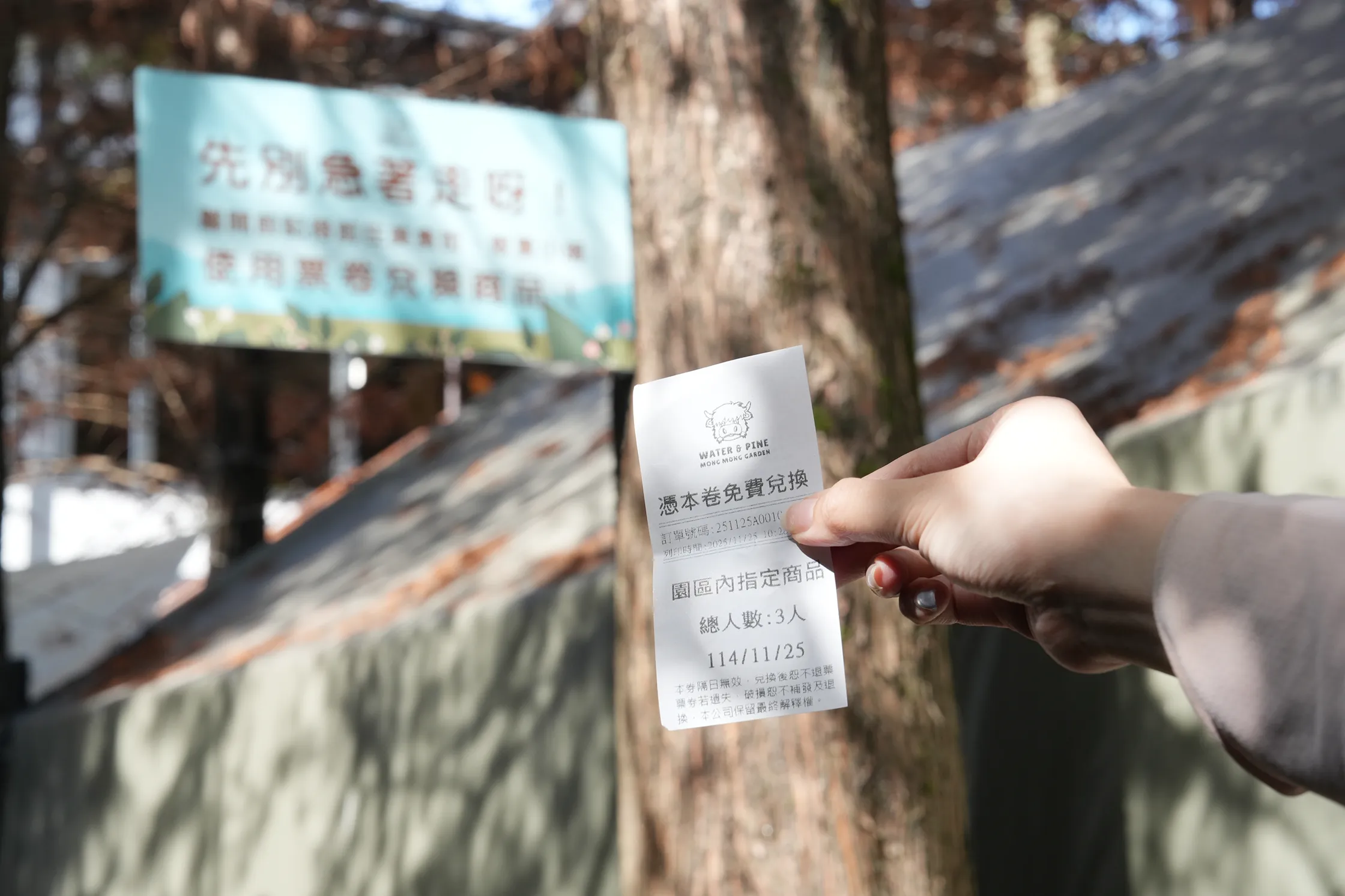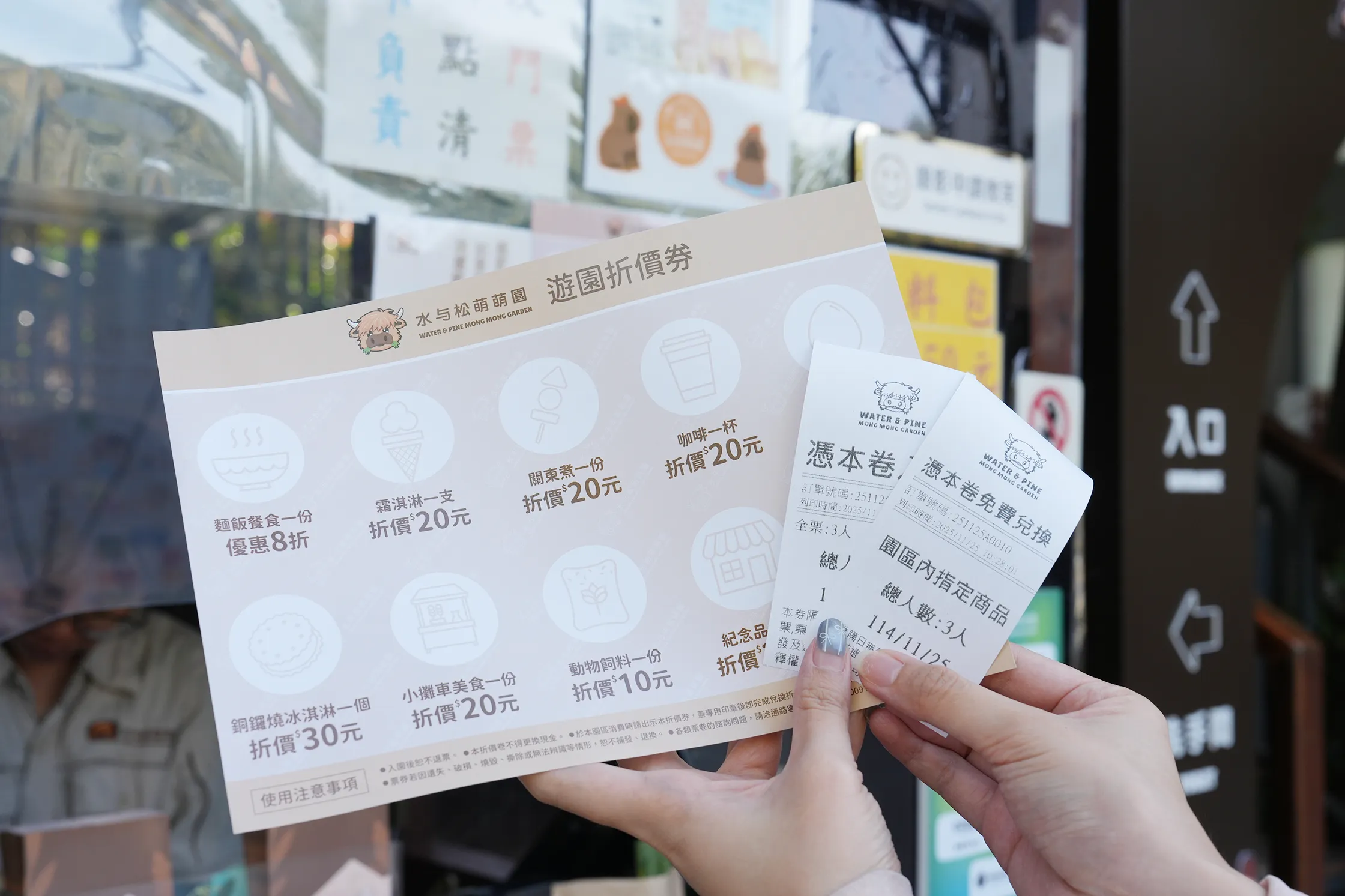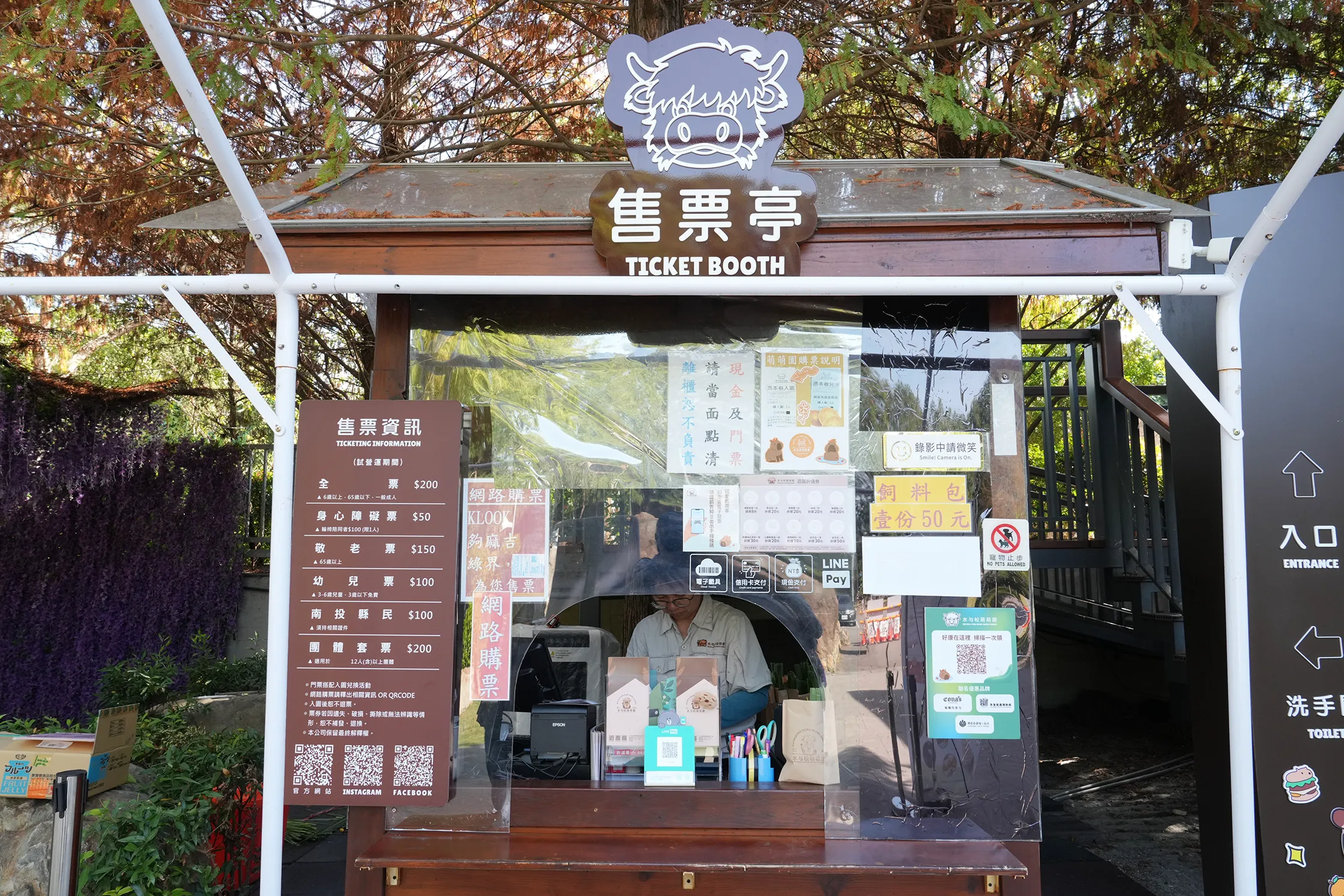 ▼進入園區後先在售票亭購票,可以獲得一份遊園折價券和免費兌換指定商品的收據,要記得收好,最後離開前記得拿去販賣部兌換。