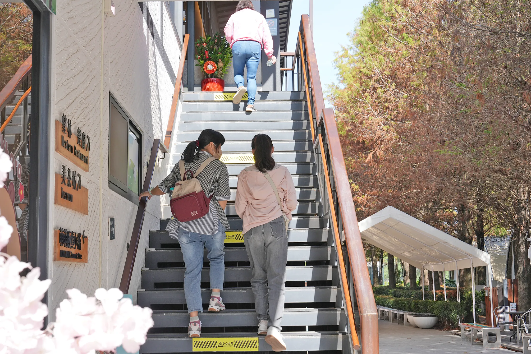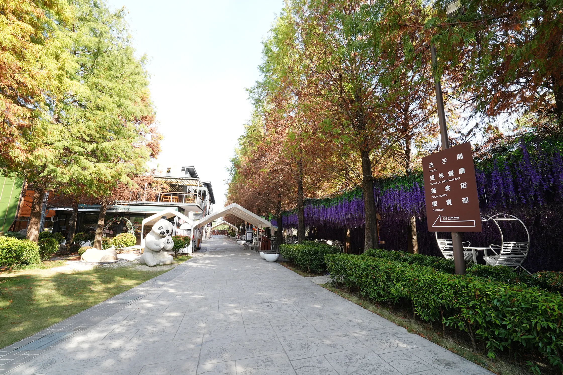 這一區也是觀賞落羽松的地方,我們來的季節還不夠冷,落羽松大概變色一半而已,往前走就可以抵達售票亭和販賣部。