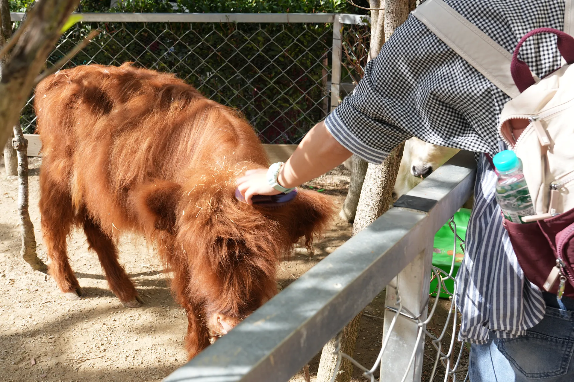 ▼除了餵食牧草外,還可以使用提供的梳子來幫蘇格蘭高地牛梳毛,小牛都很乖給摸,毛茸茸的好可愛啊。