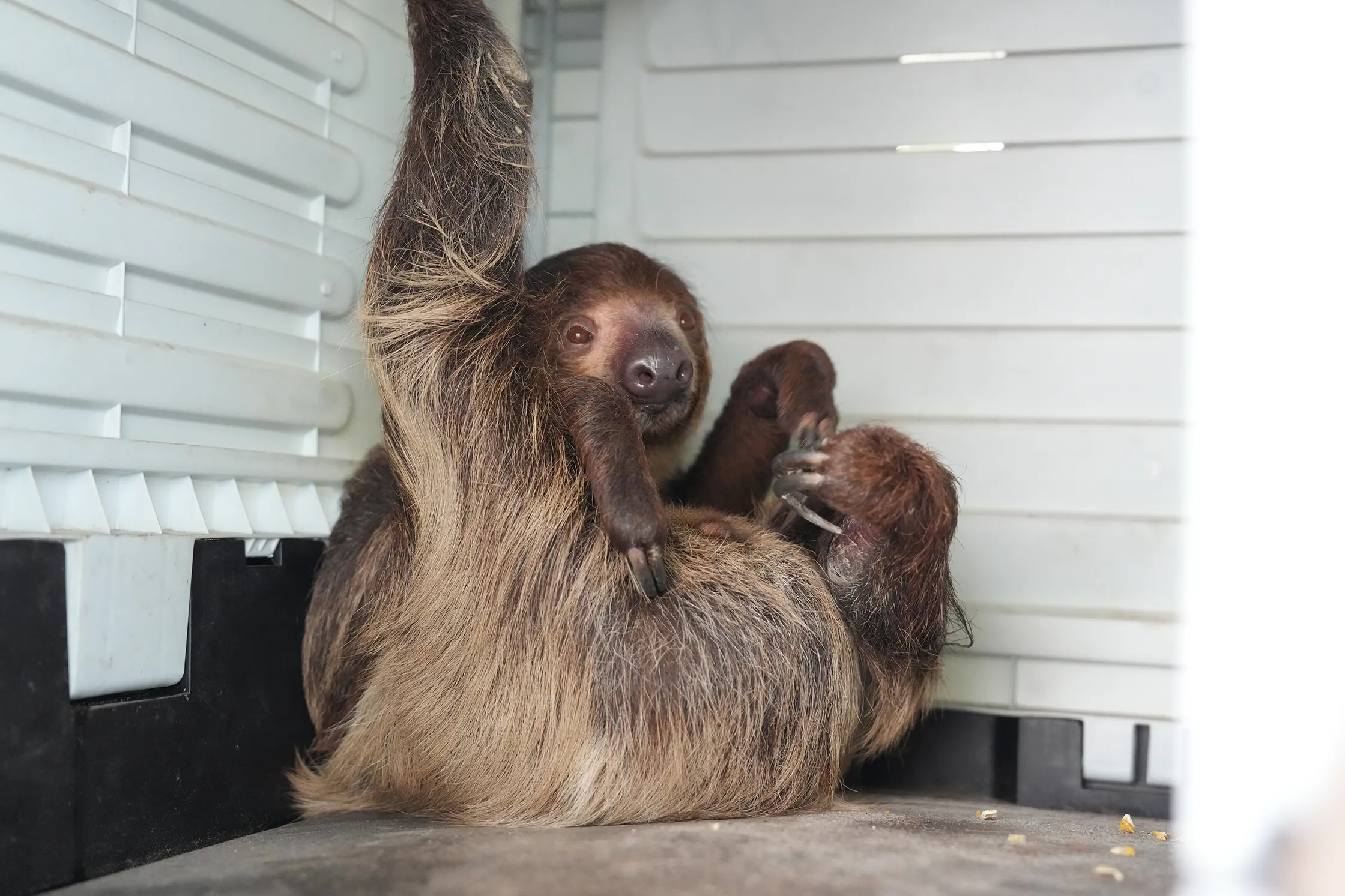▼另外在梵天雞這裡有一個獨立的「樹懶」區,牠自己住在好大的套房裡面,今天剛好看到樹懶在小房屋內睡覺,從洞口能用超近距離觀看呢。